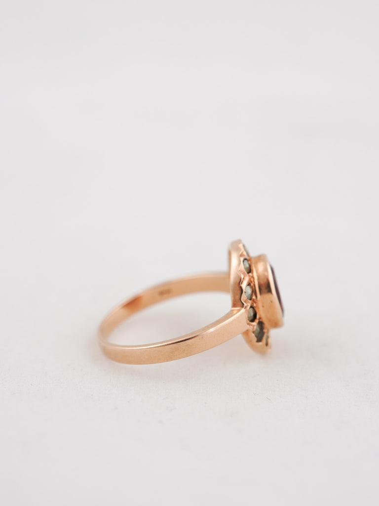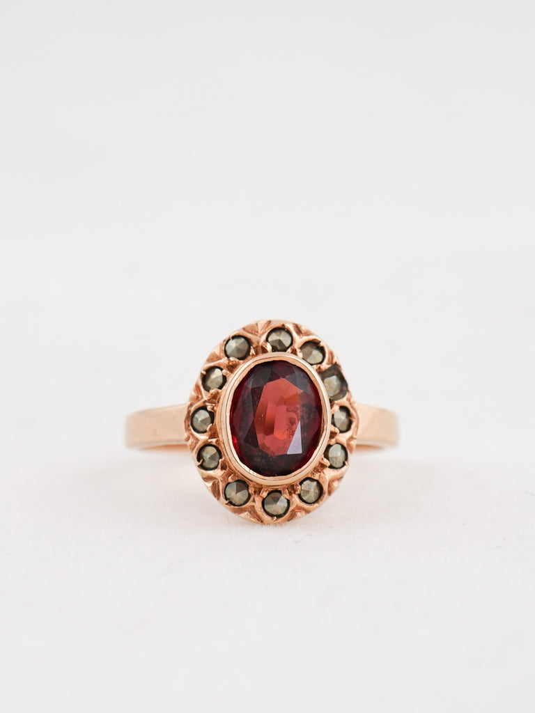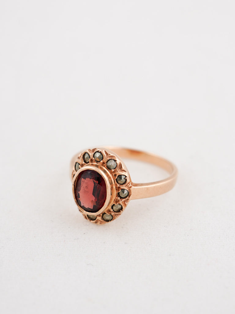 14K Garnet & Marcasite Ring