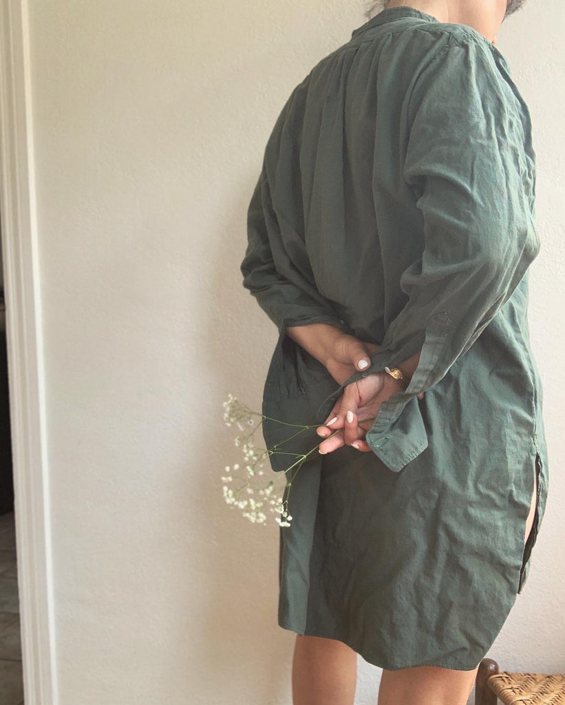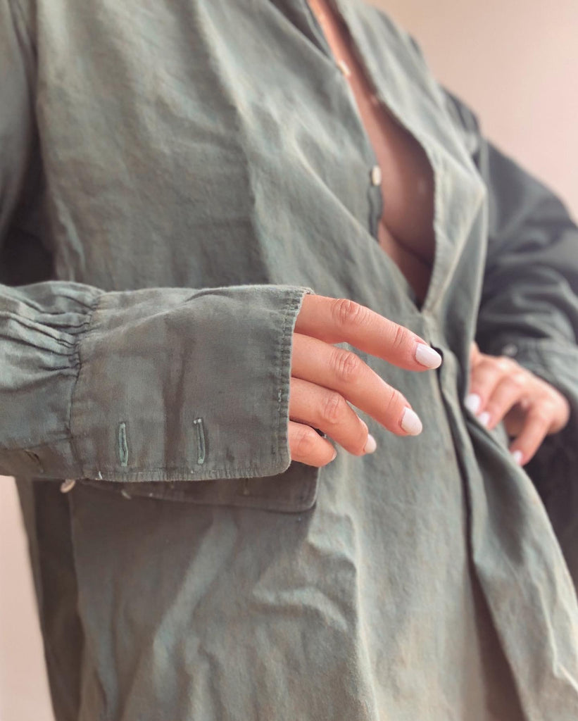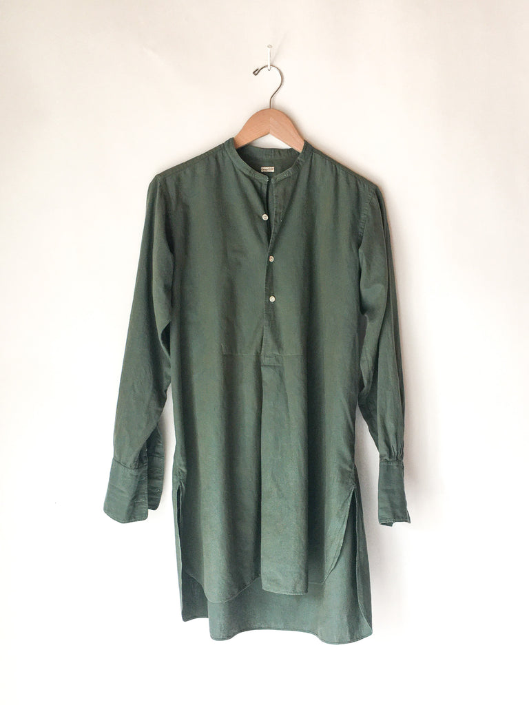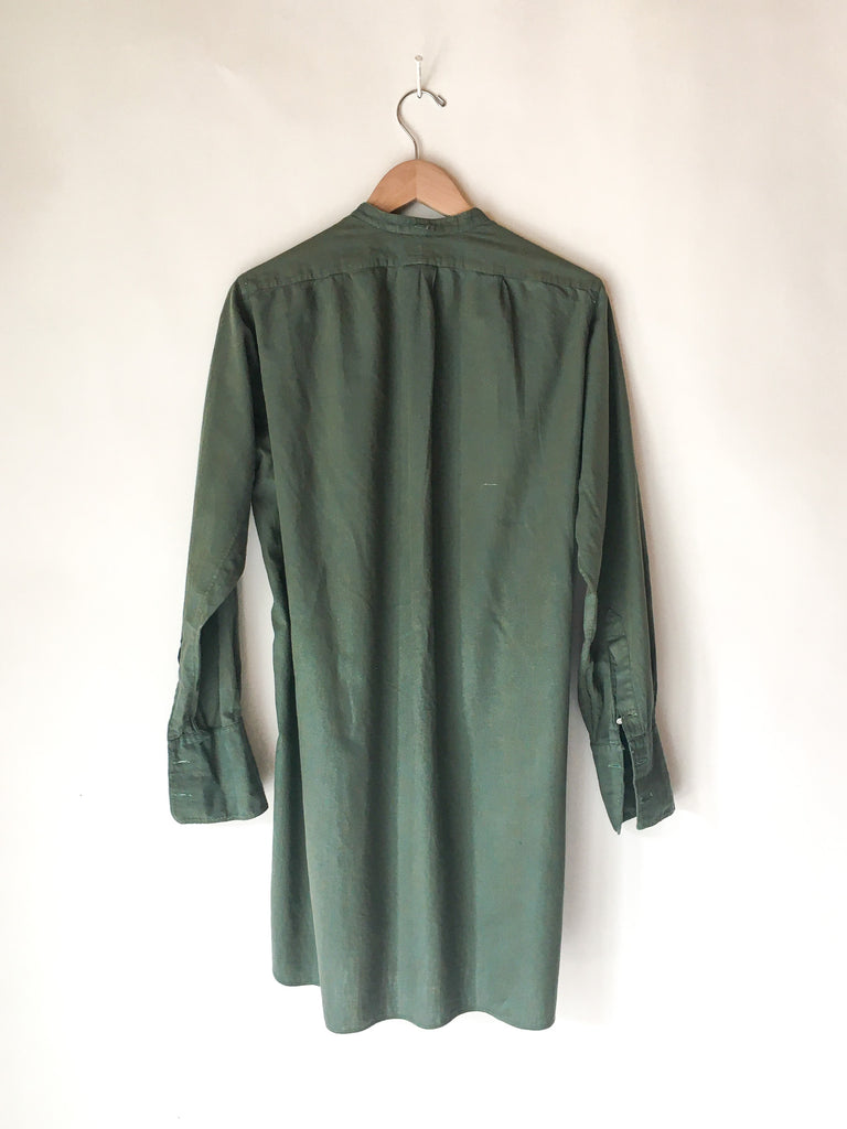 Soft European cotton tunic shirt circa 1930/40’s made for men, but equally fabulous as a dress or layering piece for women. We especially gravitate toward garments that can be worn by everyone. French cuffs, recommend cuff links or rolling sleeves.