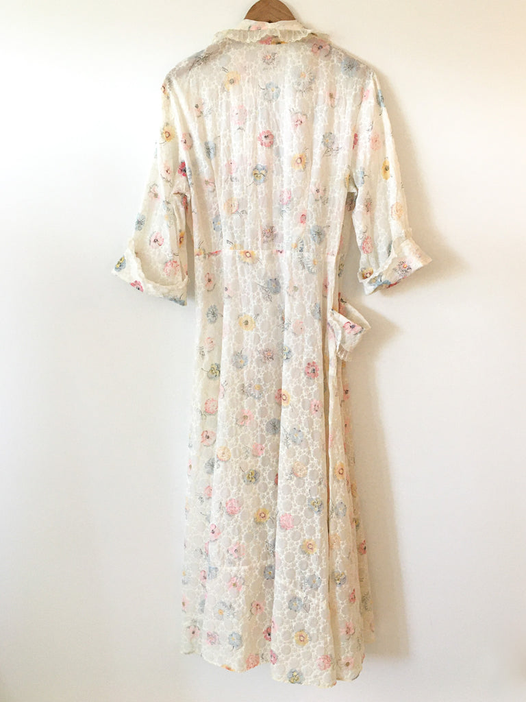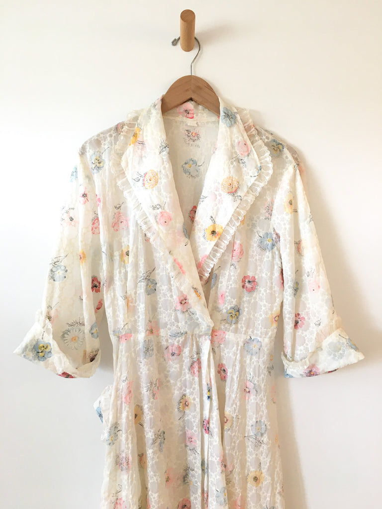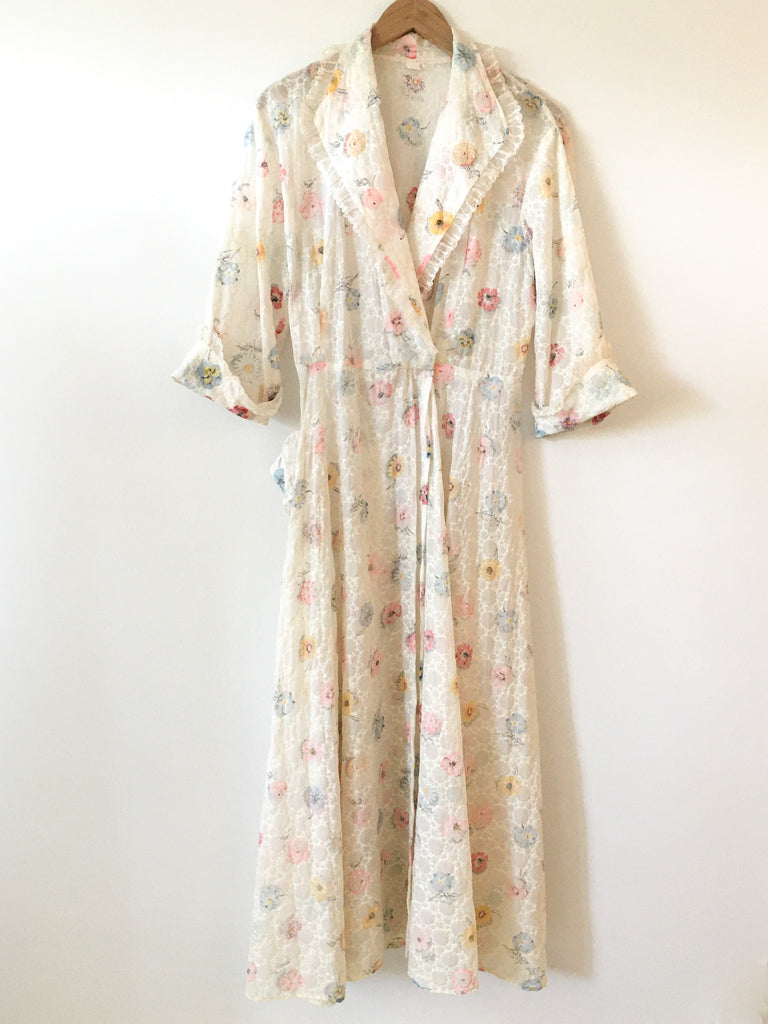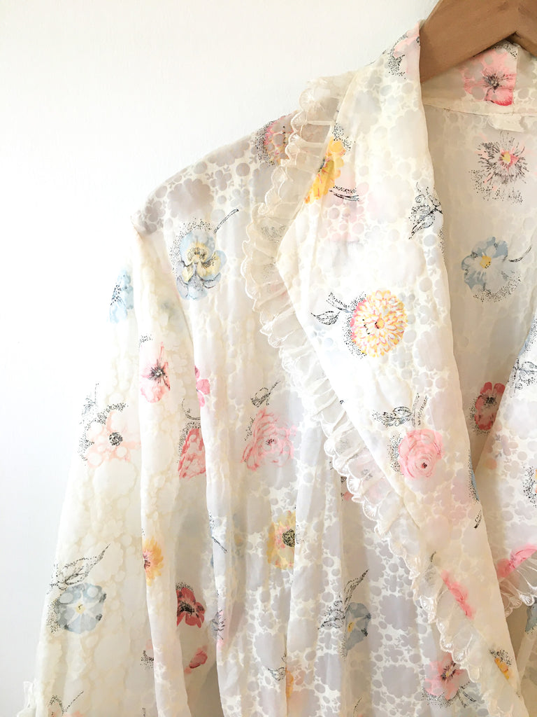 Pretty sheer floral dressing gown. We’d wear this as a dress all summer long.