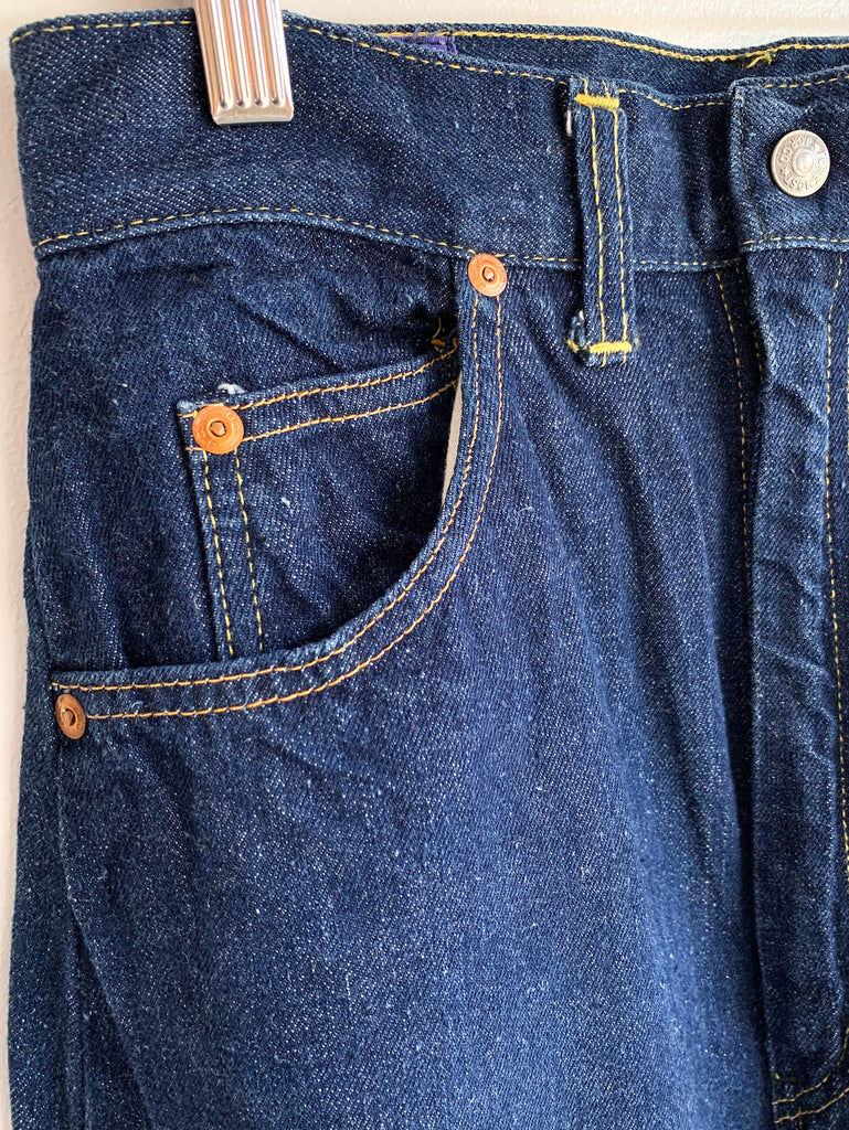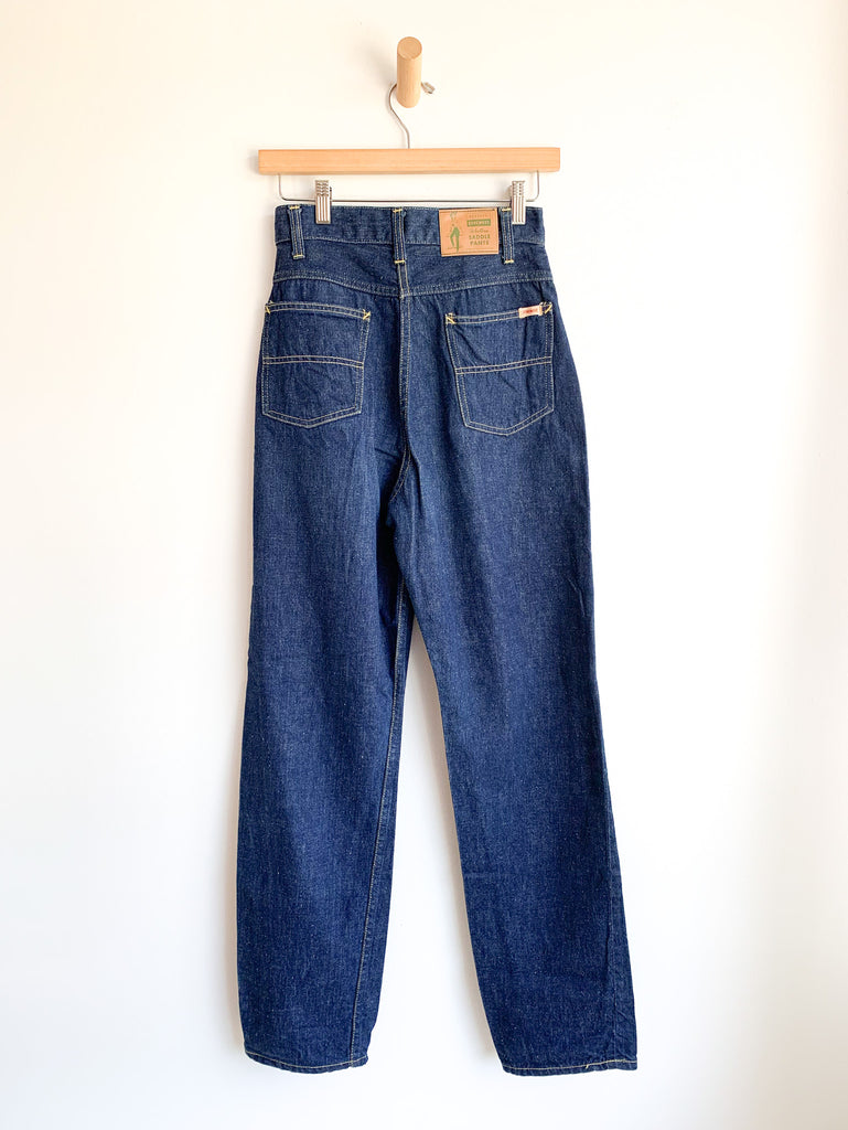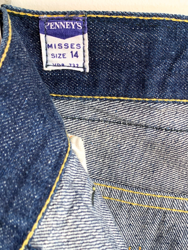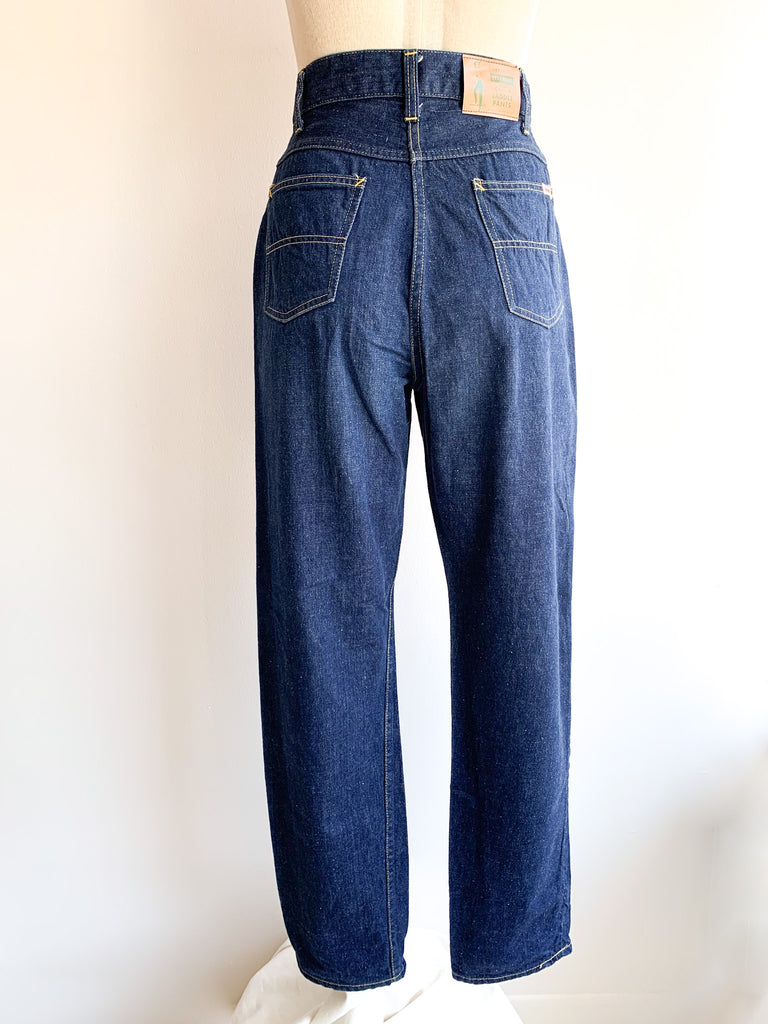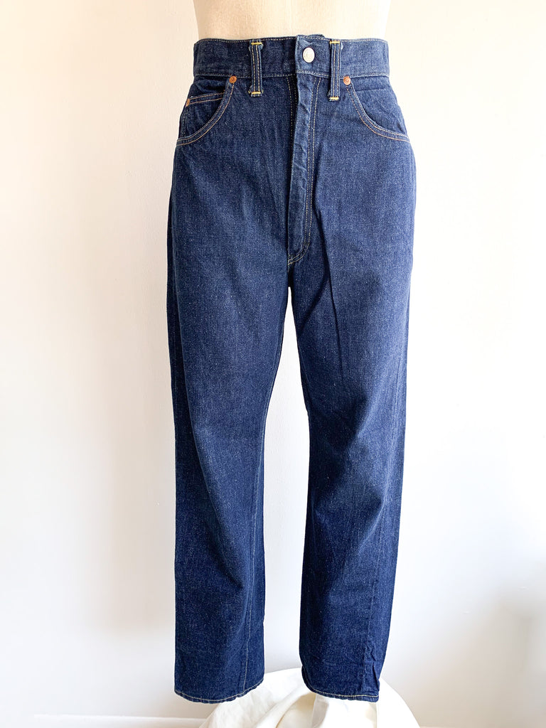 High waisted amazing denim jeans with lemon yellow stitching. Appear to be unworn.