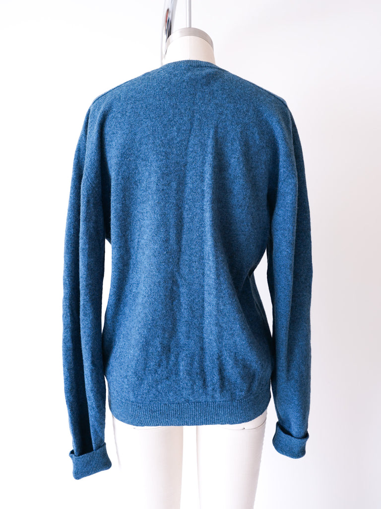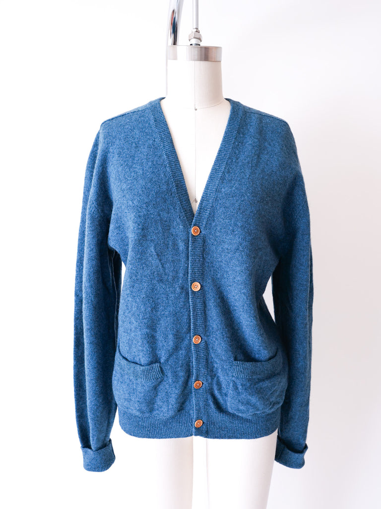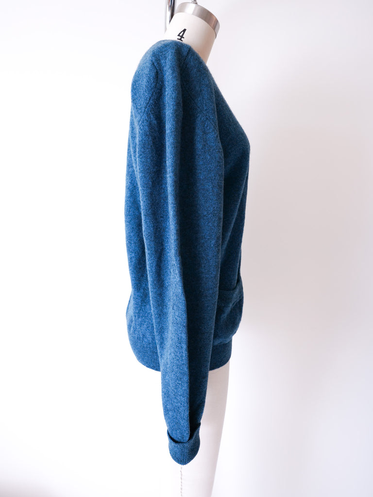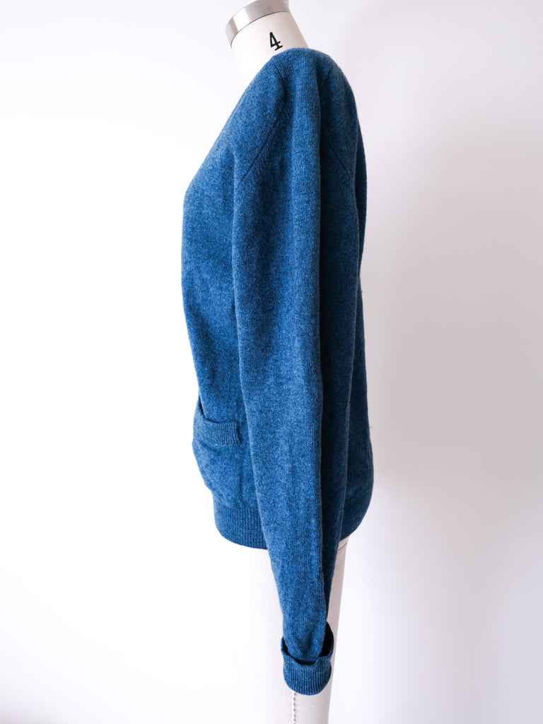 Scottish wool blue cardigan reworked with specially selected Bakelite buttons circa 1920’s and pockets.