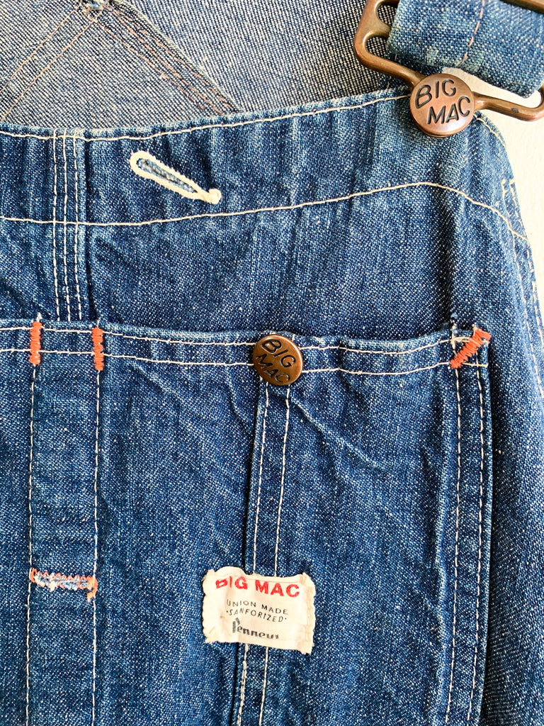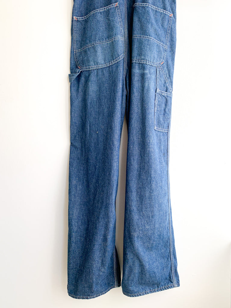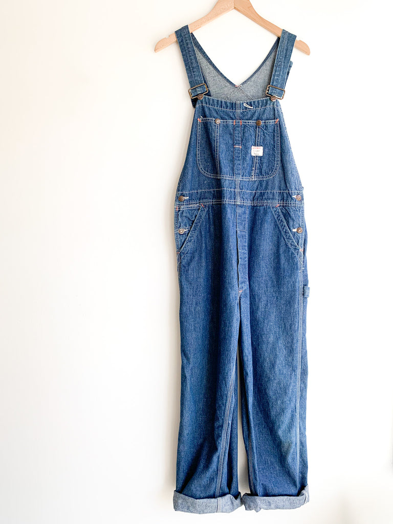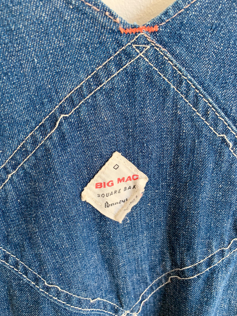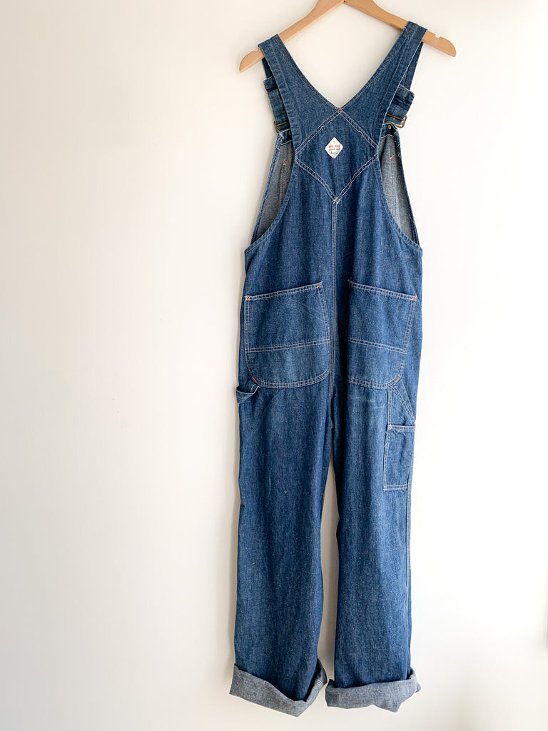Dark wash, soft denim Penney’s Square Bak overalls. Union made sanforized circa 50/60’s in great condition. Really the perfect pair of overalls. Adjustable straps with original heavy duty metal hardware and buttons.