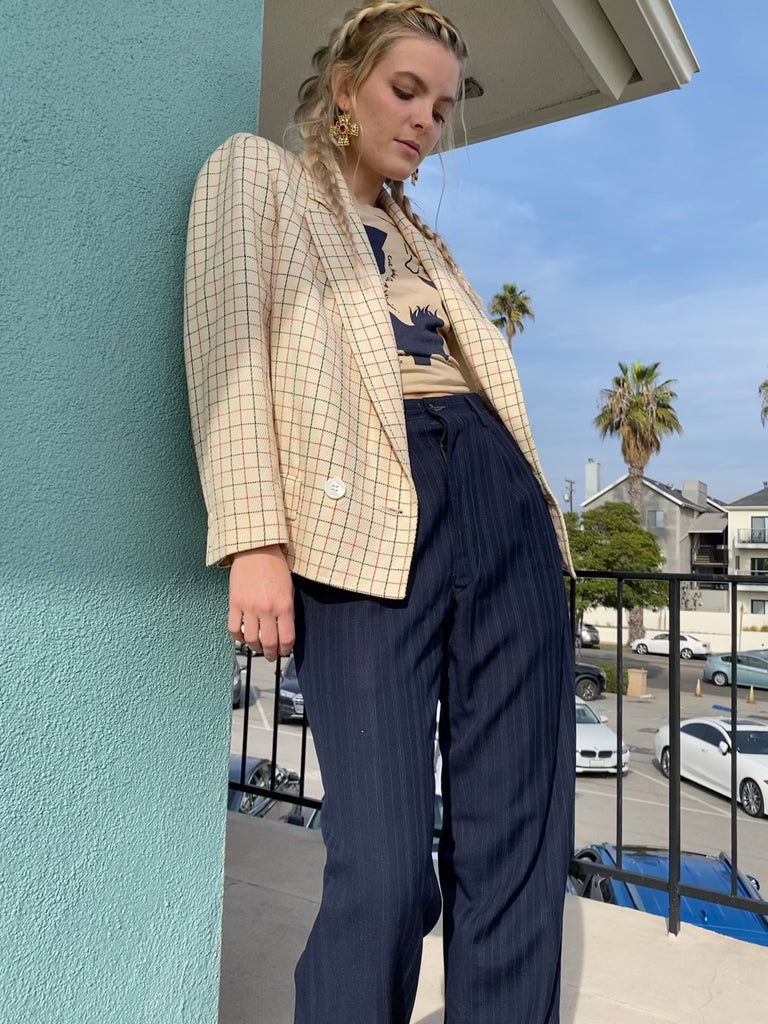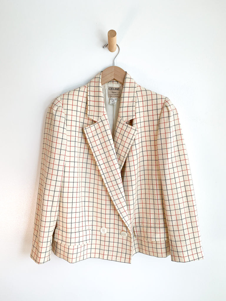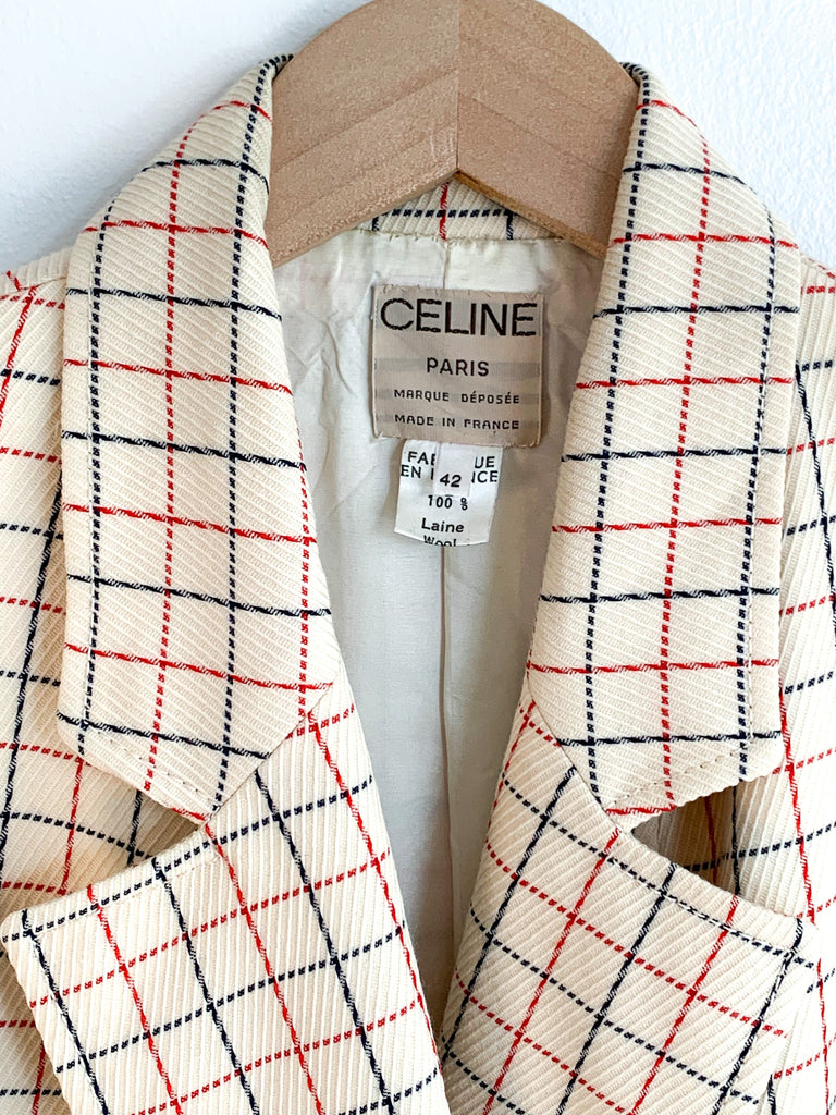 Fine wool window pane plaid old Celine blazer. Closet staple, classic, elegant.