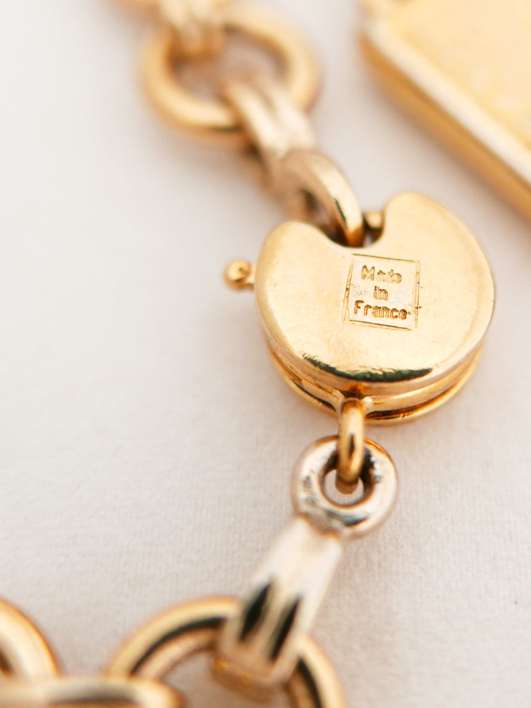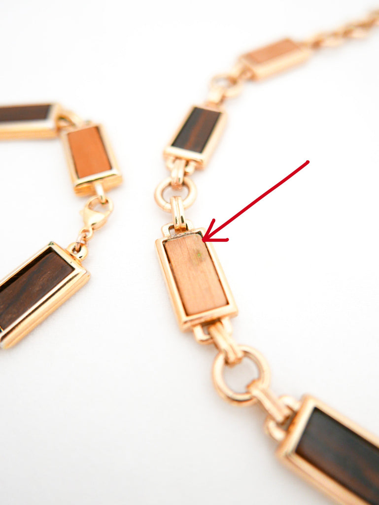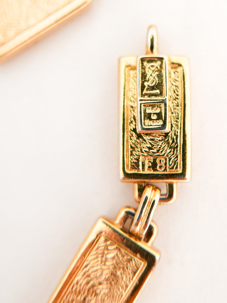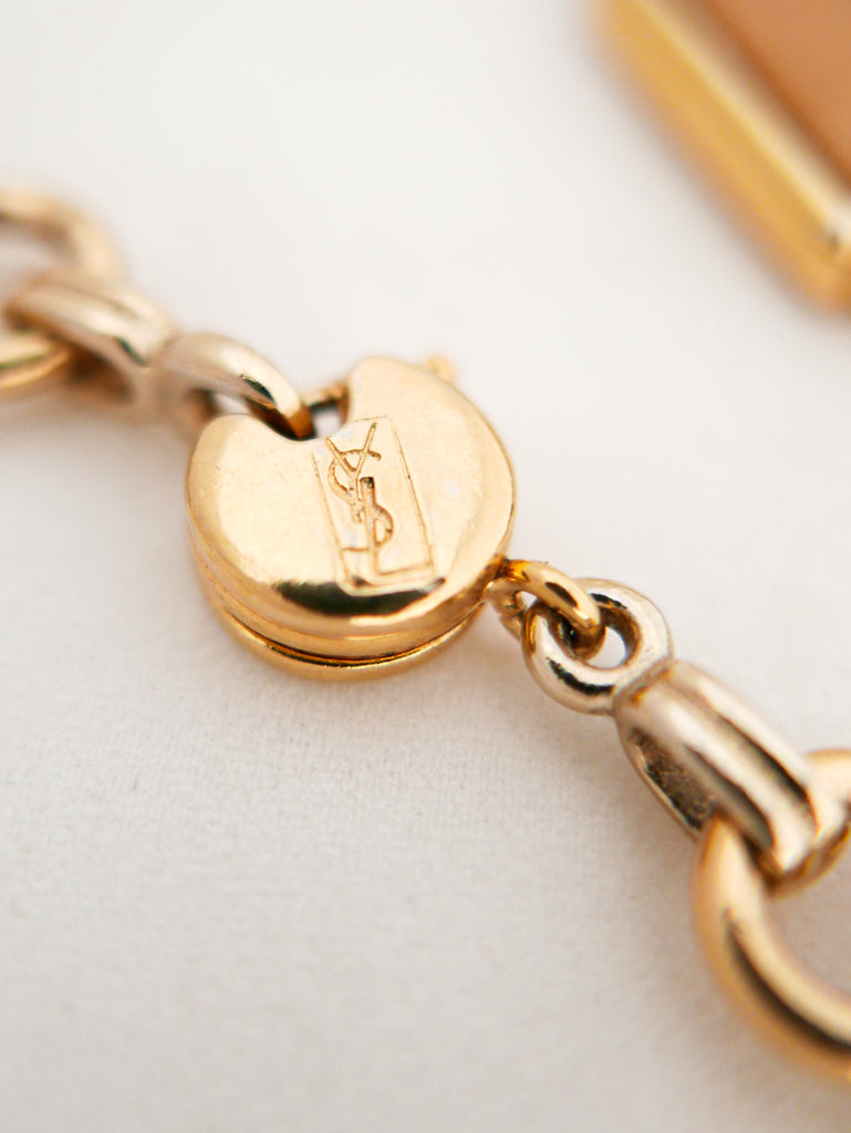 Unique wood and gold plate YSL link necklace and matching bracelet. Stamped and with.