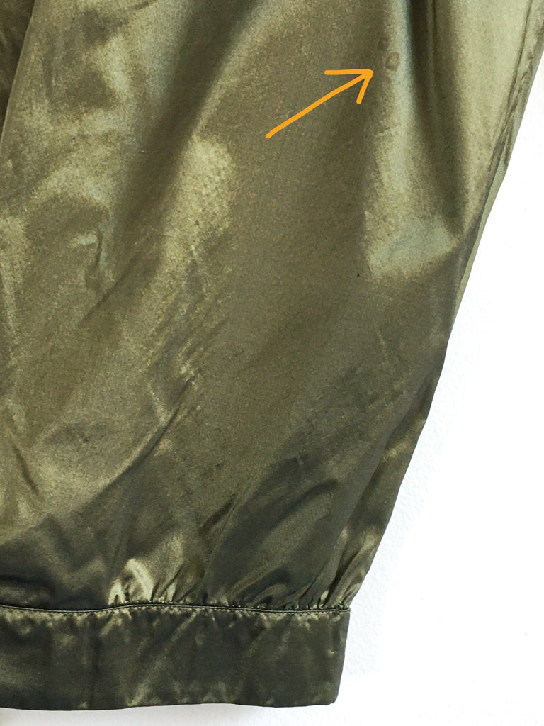Condition: Very good. Very small water(?) marks on lower pant leg (see photo).