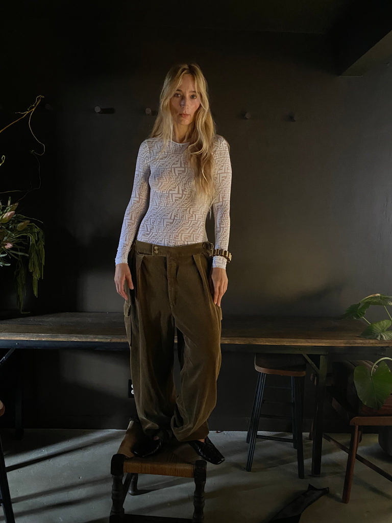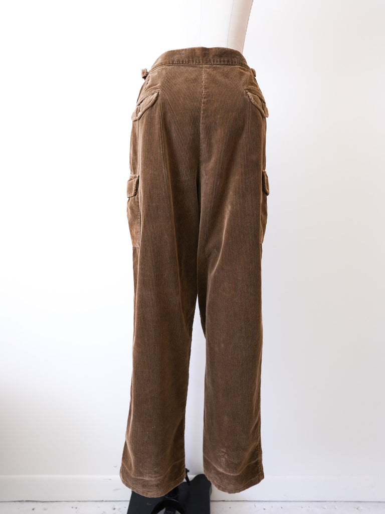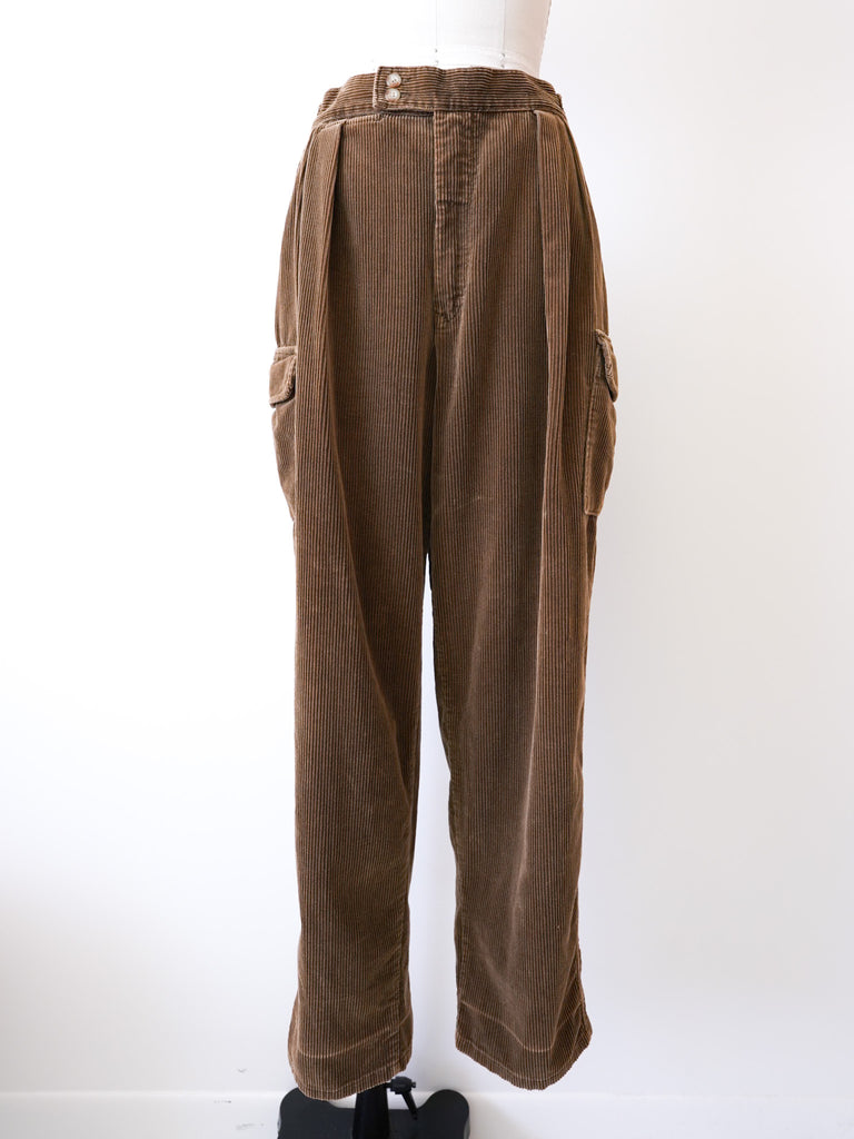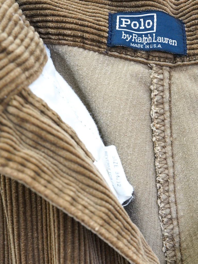 Sumptuous wide whale corduroy trousers. Genderless. Infinitely wearable. Coveted vintage blue label Polo. Made in USA.