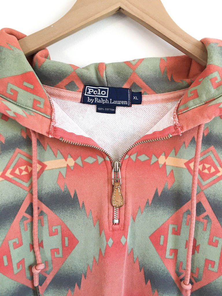 Ombré cotton knit pullover zip sweatshirt. Highly collectible blue label Polo 1980’s Ralph Lauren label. The printed blanket look is so good in desert sunset hues.