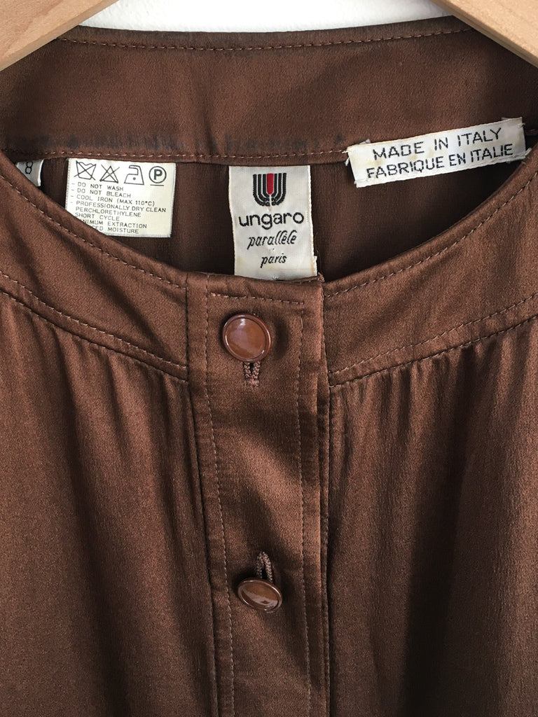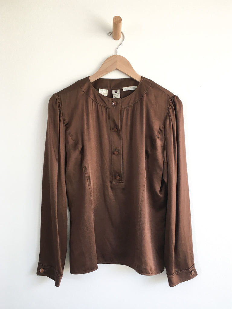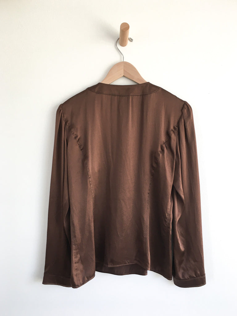 Luxurious rich chocolate silk blouse. Classic layering wardrobe staple piece.