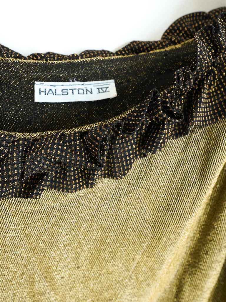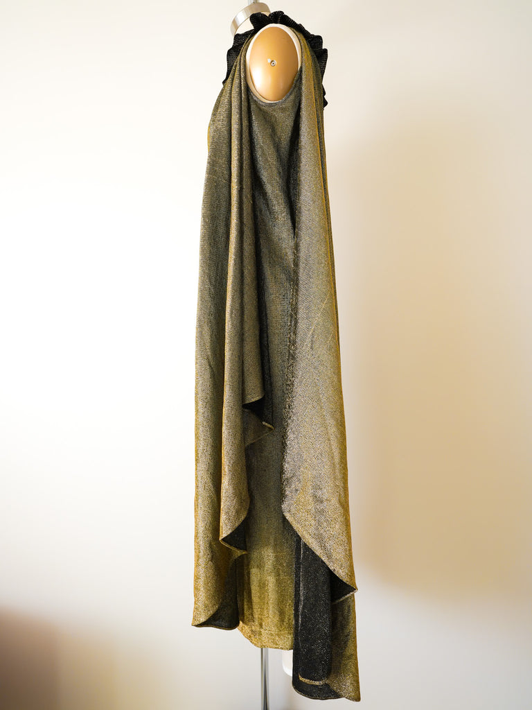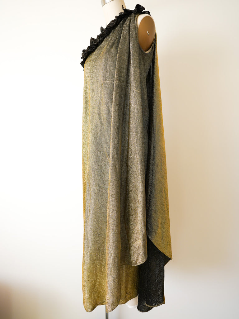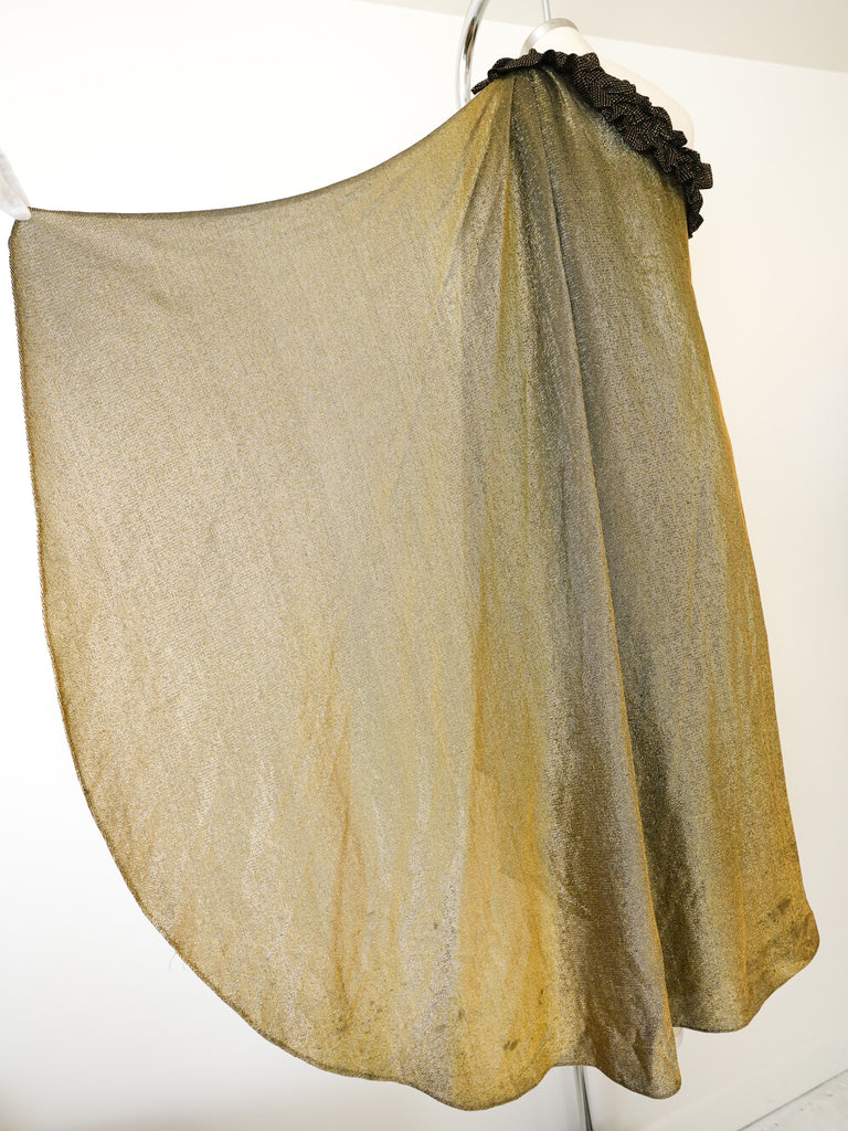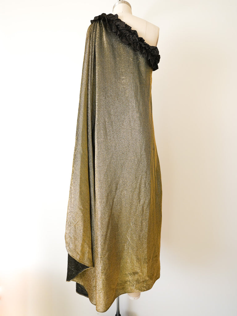 Iconic one shoulder gold lamé dress. We think this one had a life of partying at Studio 54. She’s definitely not perfect, but she kinda is.