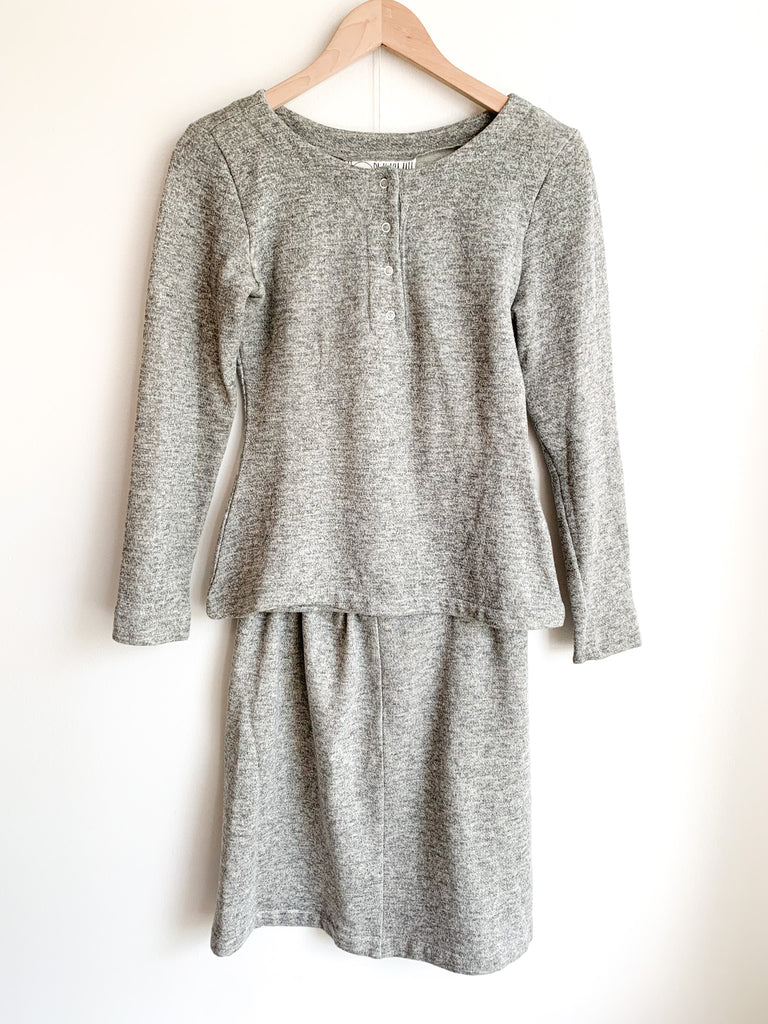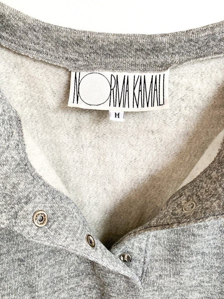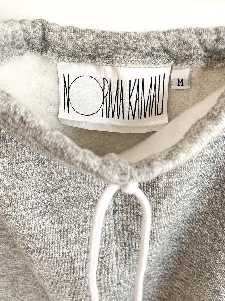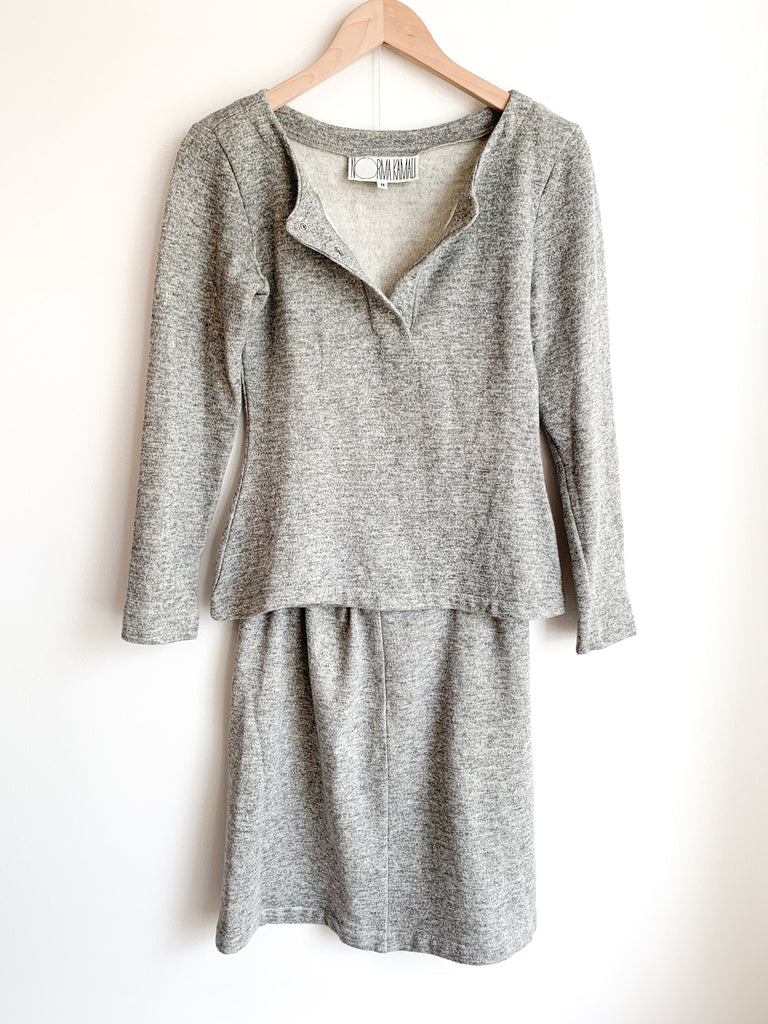 Highly collectible Norma Kamali two-piece sweatshirt set in heather gray. Infinitely wearable and cozy.
