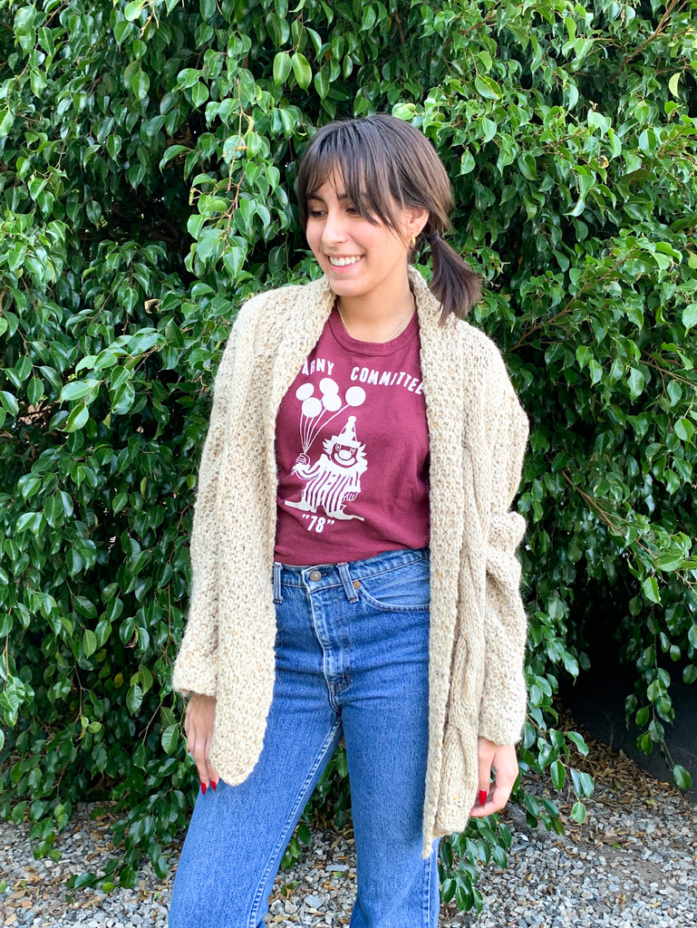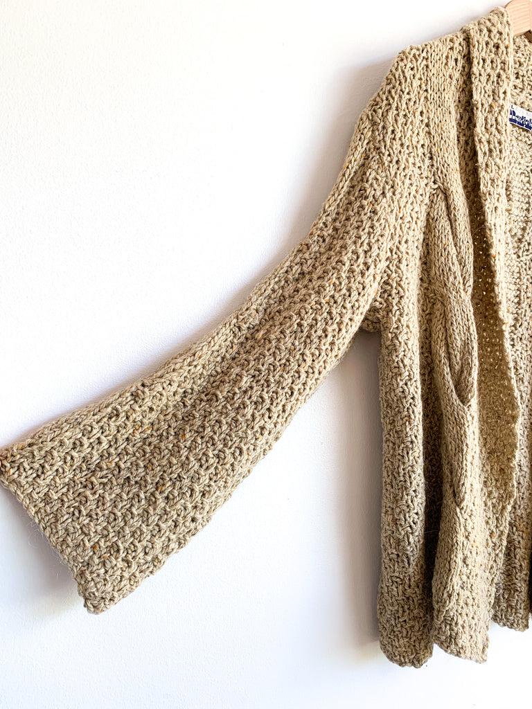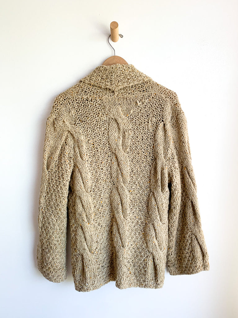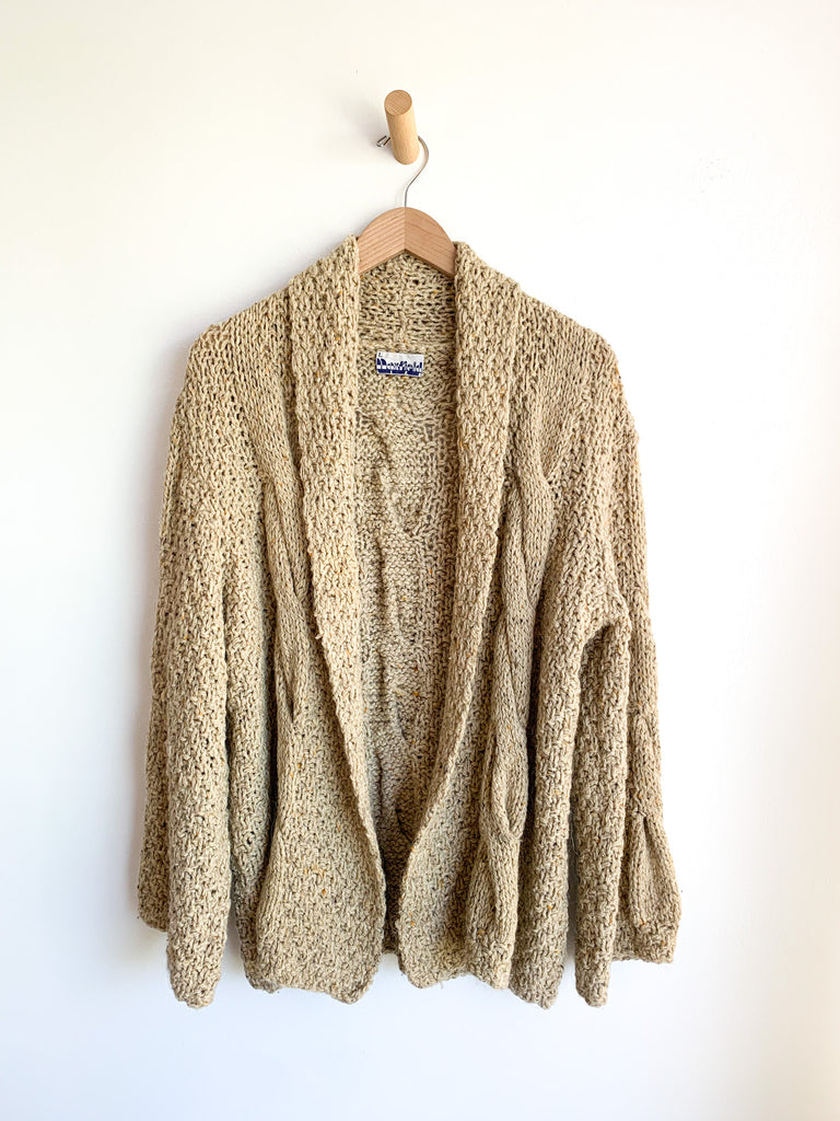 Rare find cardigan from Los Angeles high-end boutique Maxfield’s private label. Neutral flax colored wool. Oversize fit. Universal wear. The wool is not super soft. Best to wear layered.