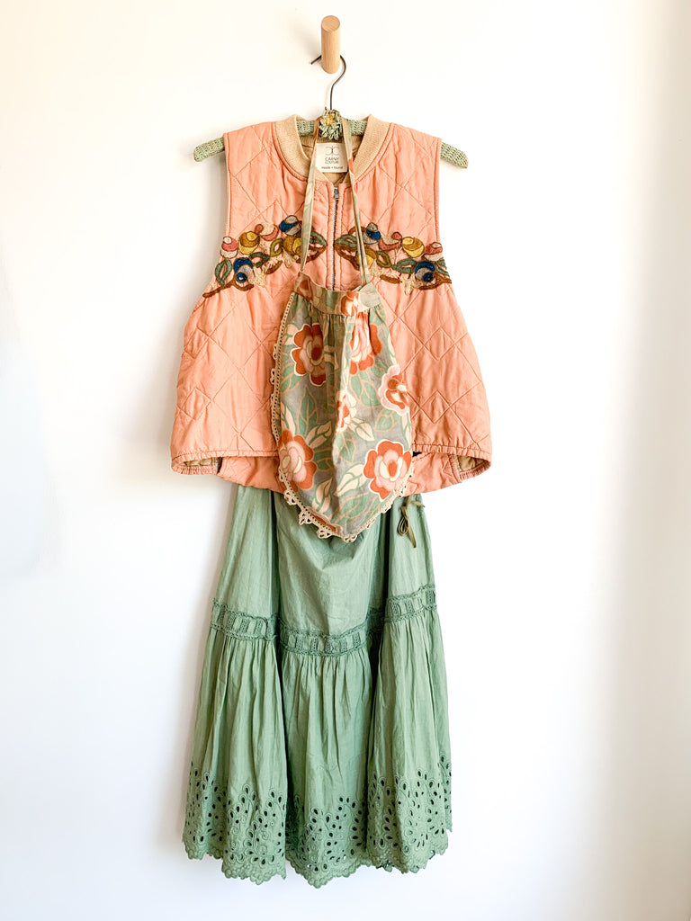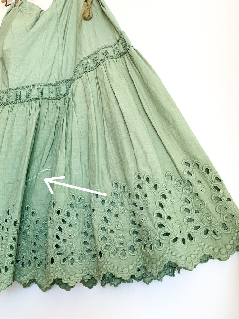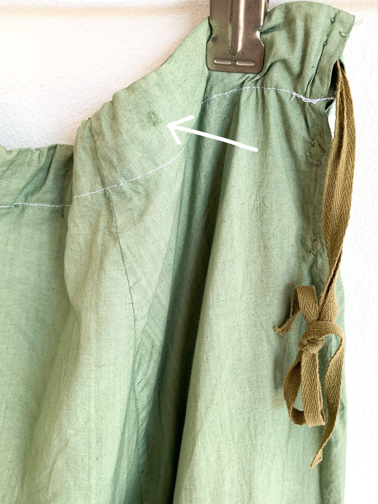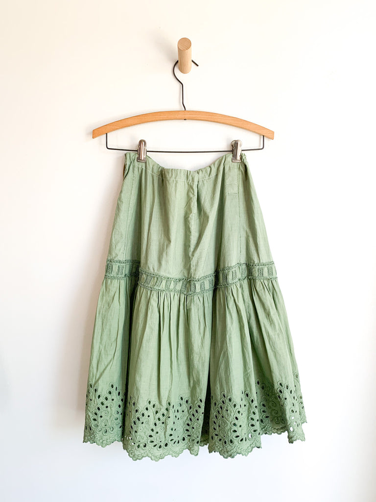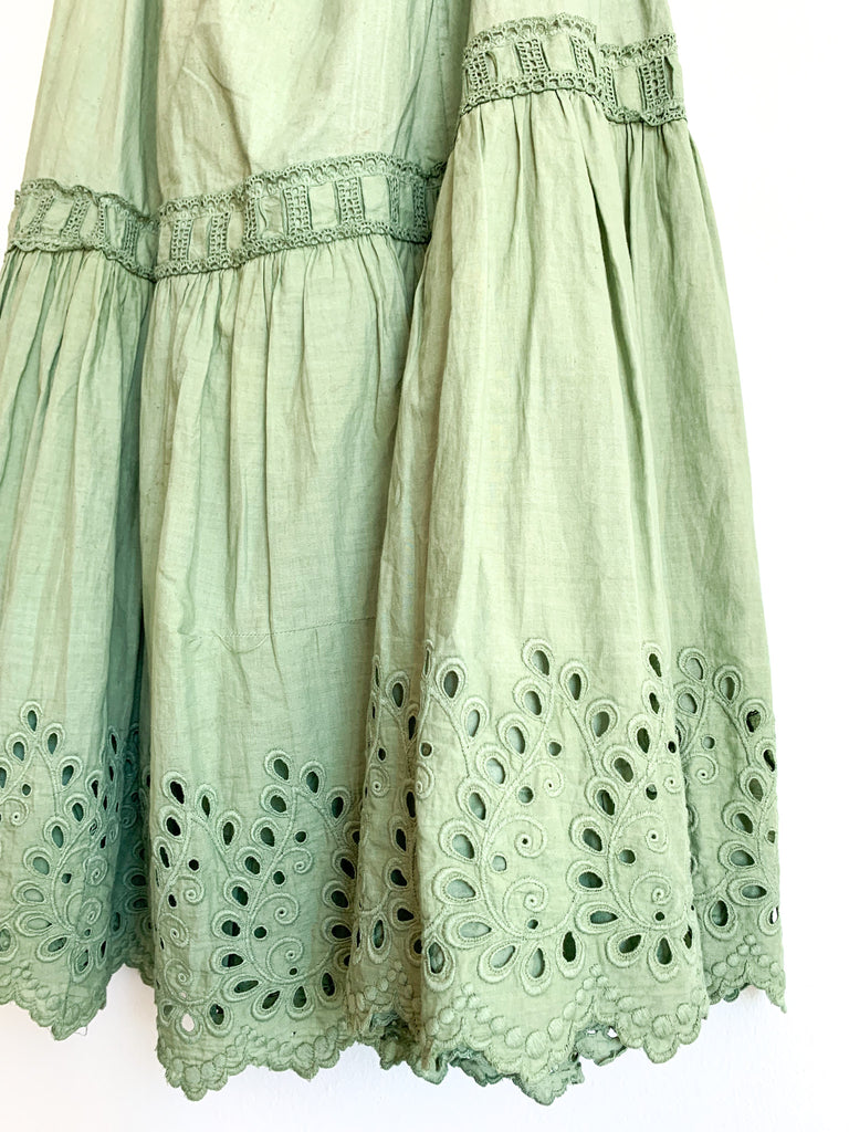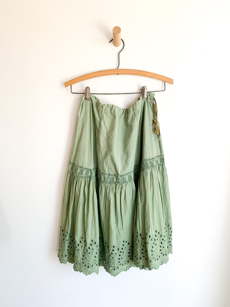 Antique petticoat skirt with drawstring waist dyed a happy grass green.