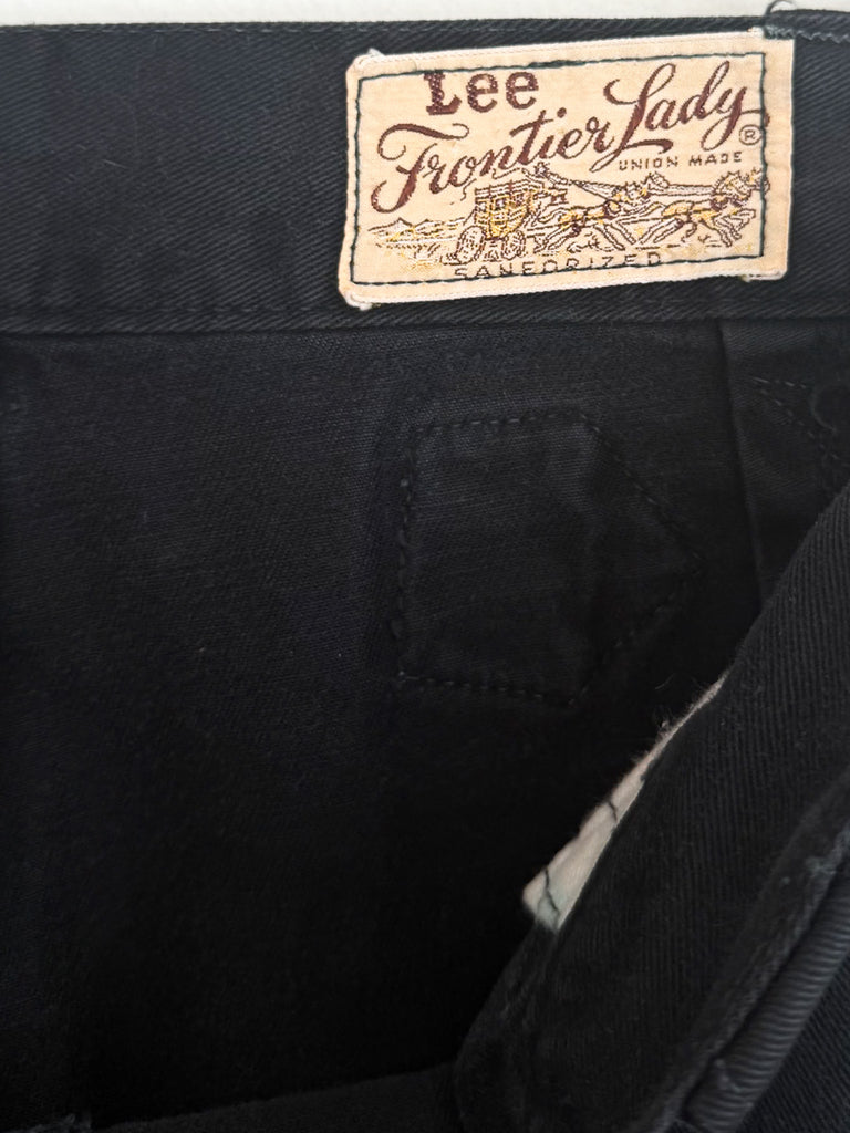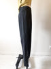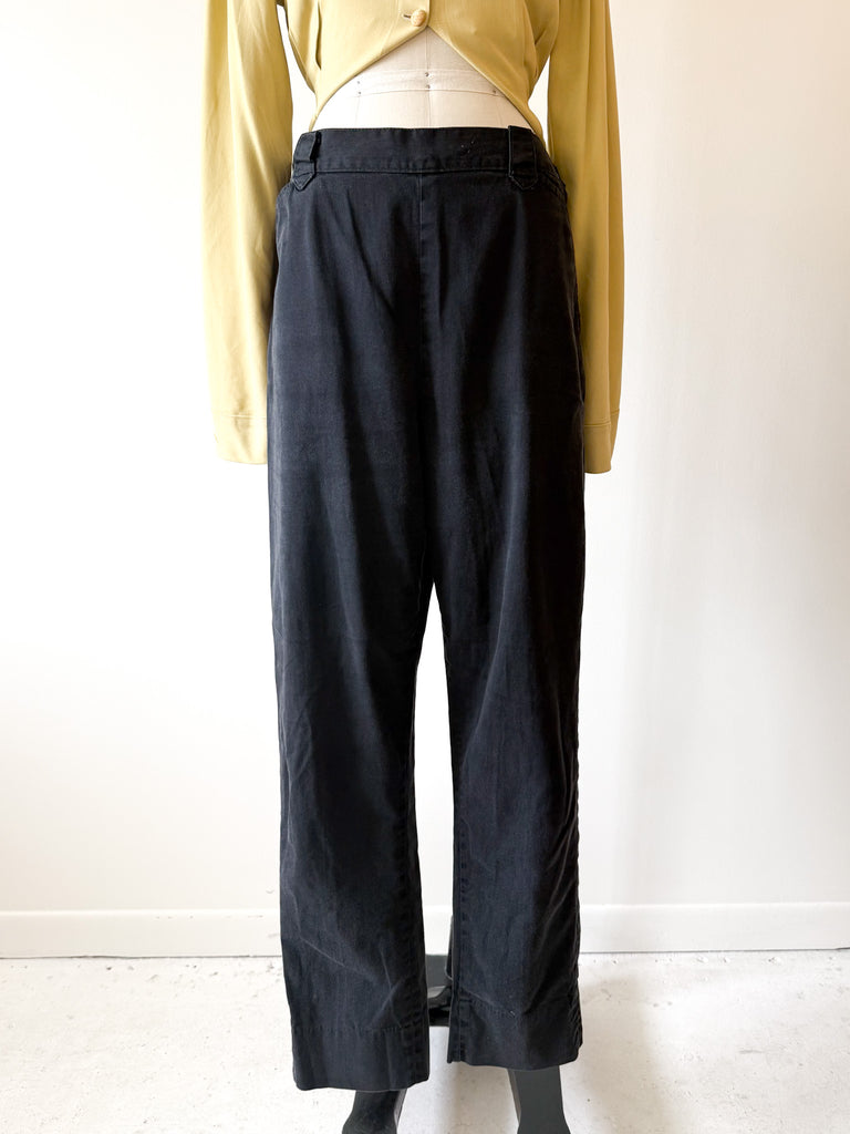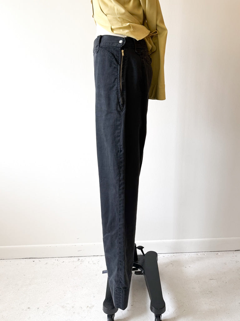 Side Talon zip buckle back faded black cotton denim pants. Flattering high waisted fit.