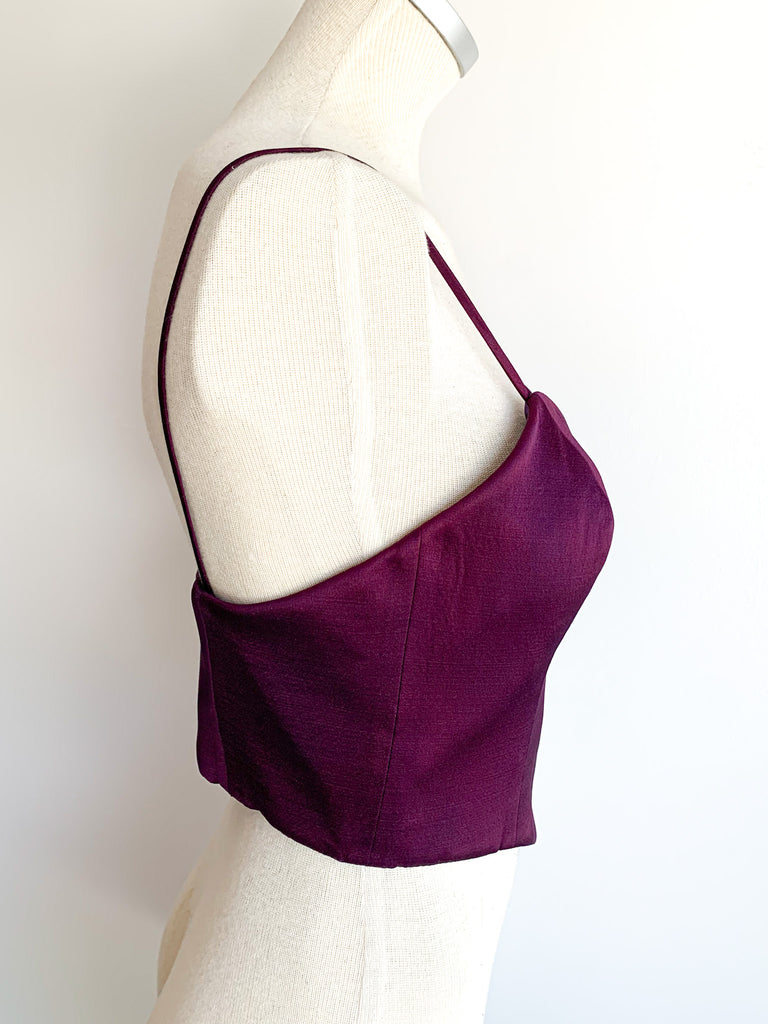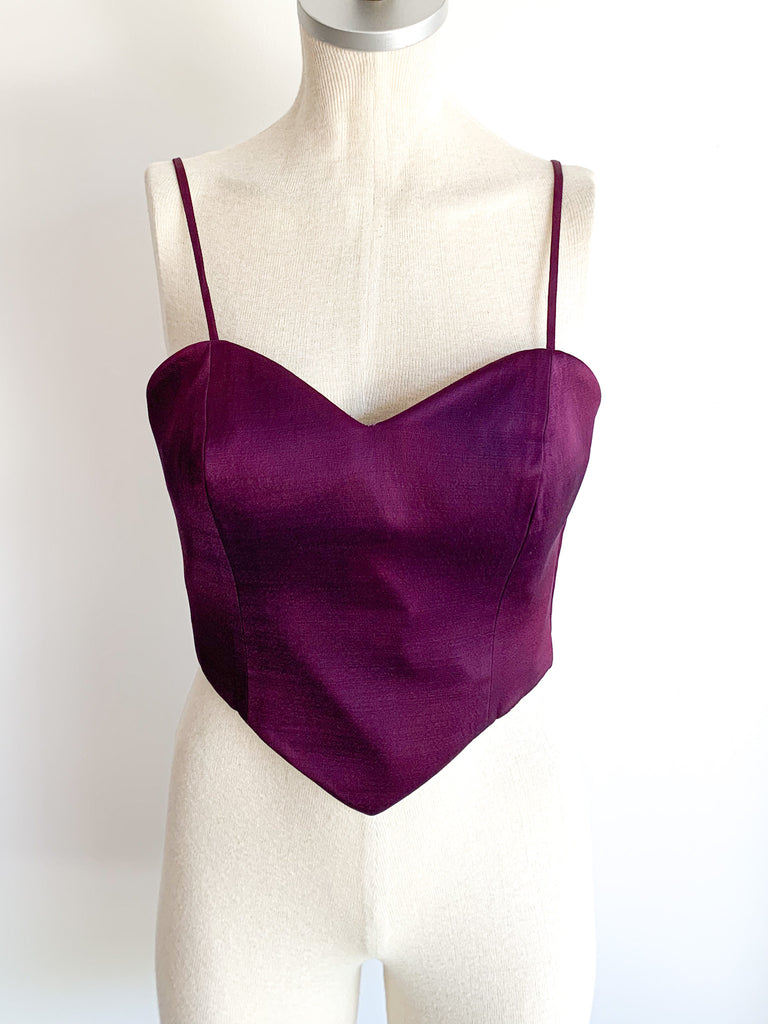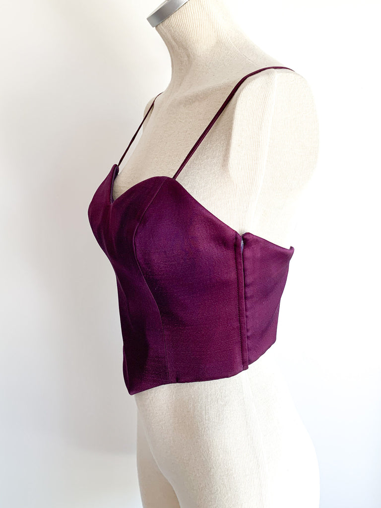 Delicious, regal dark violet fitted bustier with straps. Side zips. A rare, nearly perfect thing of beauty. Made in Italy.