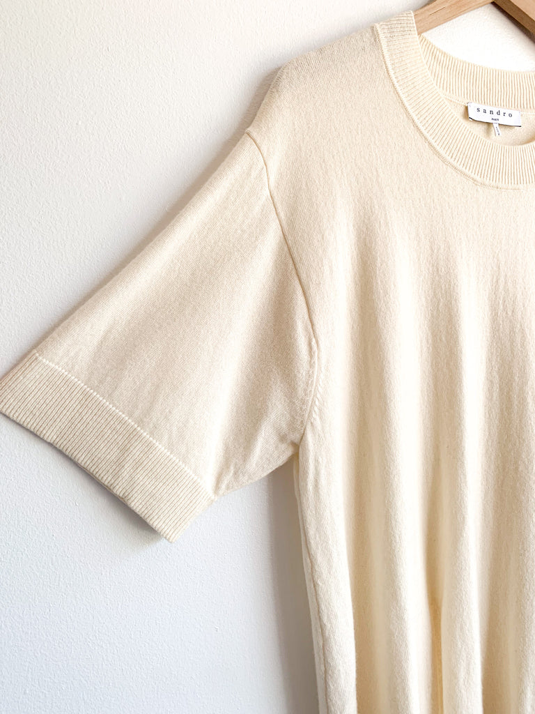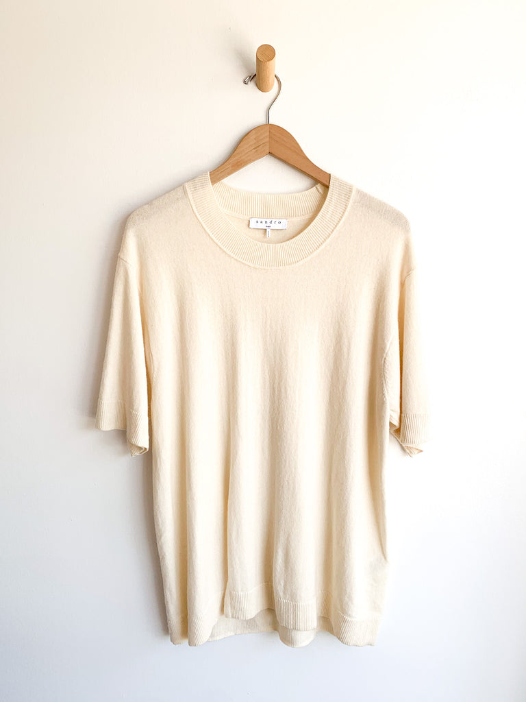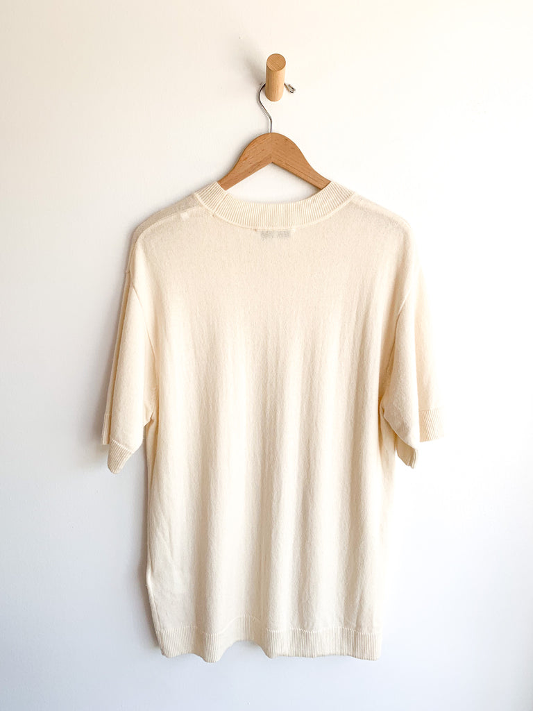 Cozy and classic minimalism. Oversized Avant Garde fit. Short sleeve cashmere blend sweater/top.