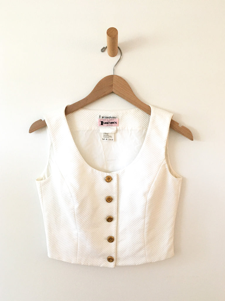 1980's cotton quilted stitched top or vest with beautiful gold buttons.