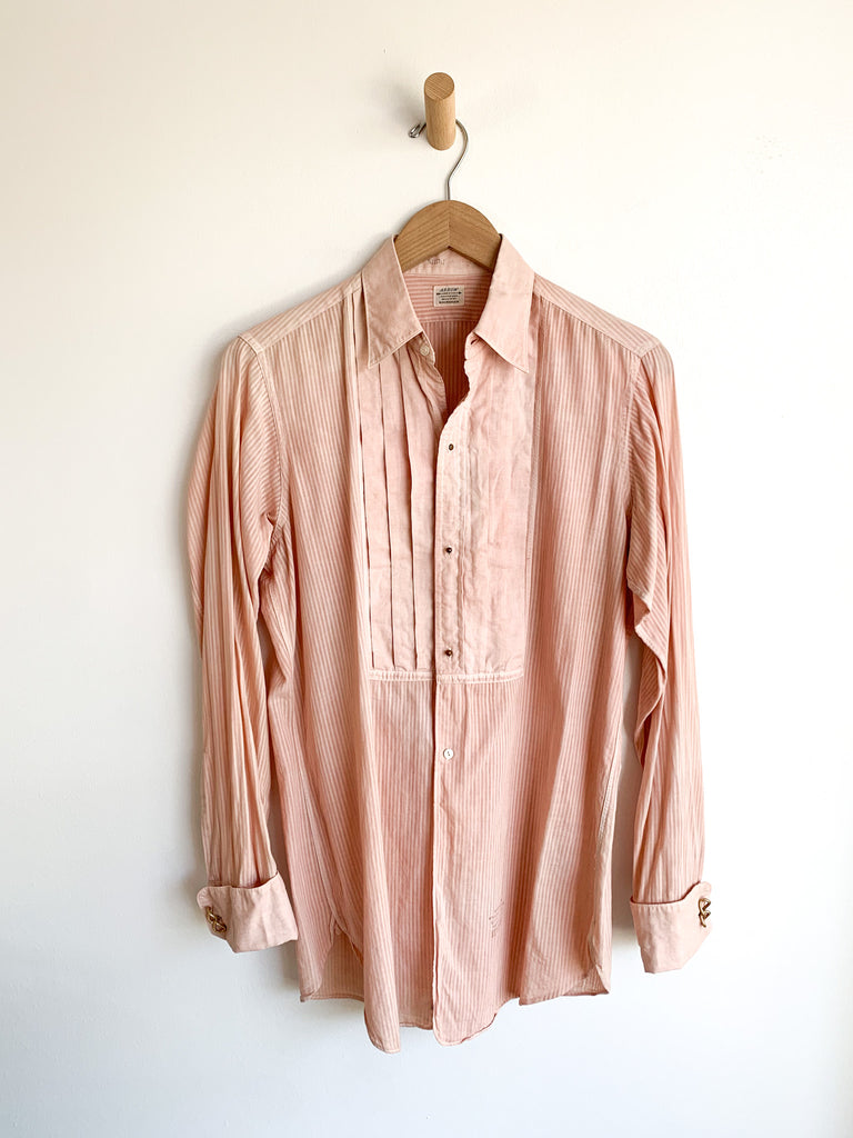 Hand dyed antique tuxedo shirt. Studs and cuff links are included.