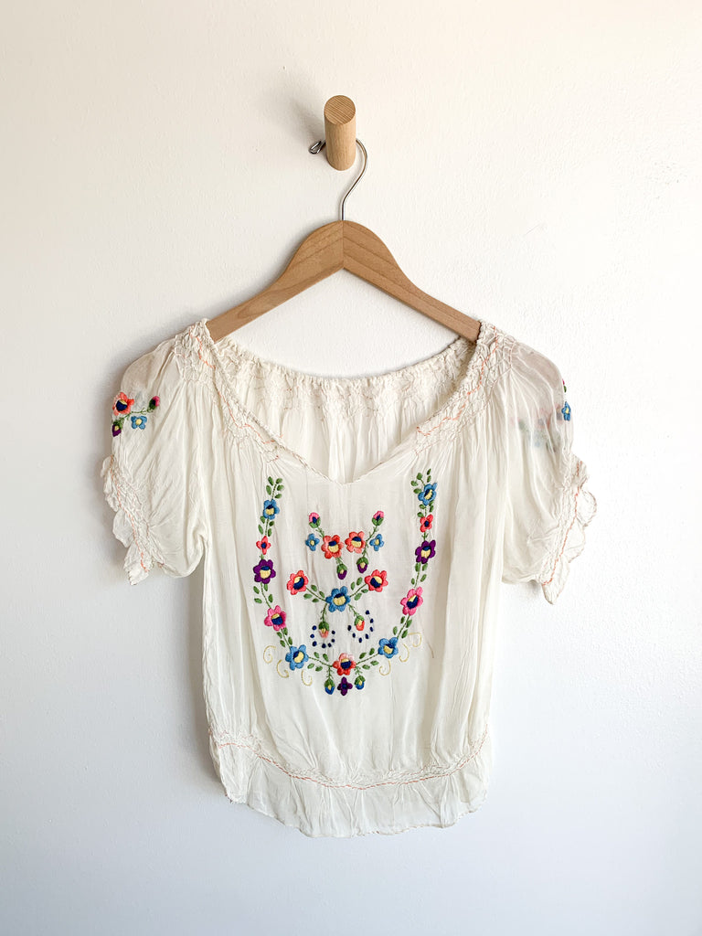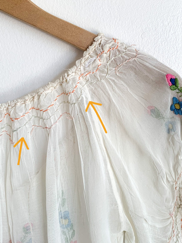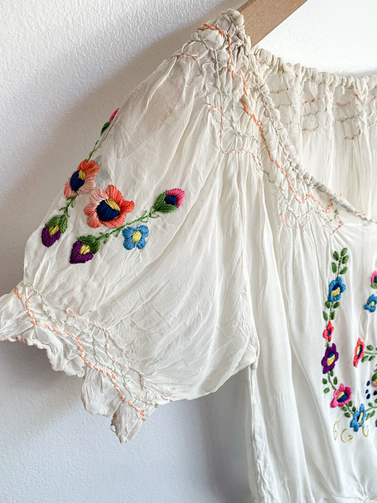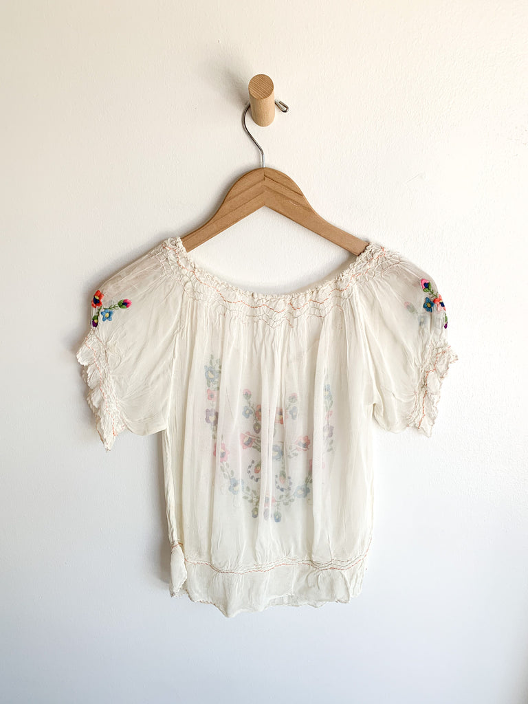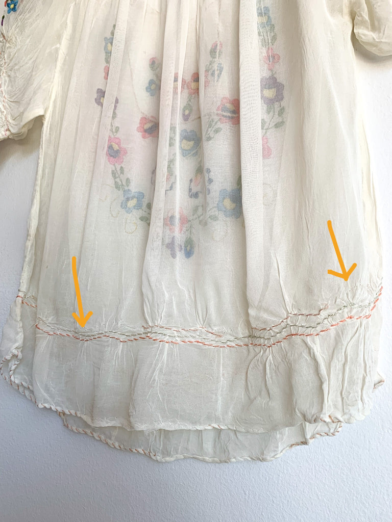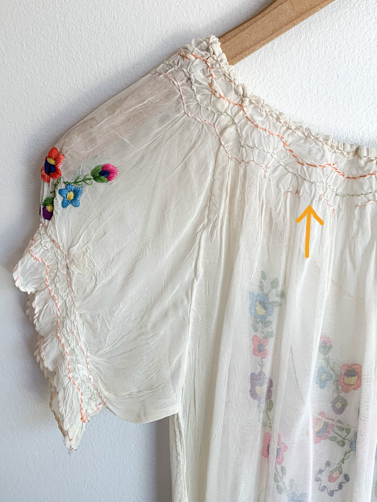 Hungarian sheer embroidered blouse. As found but lots of wear left!