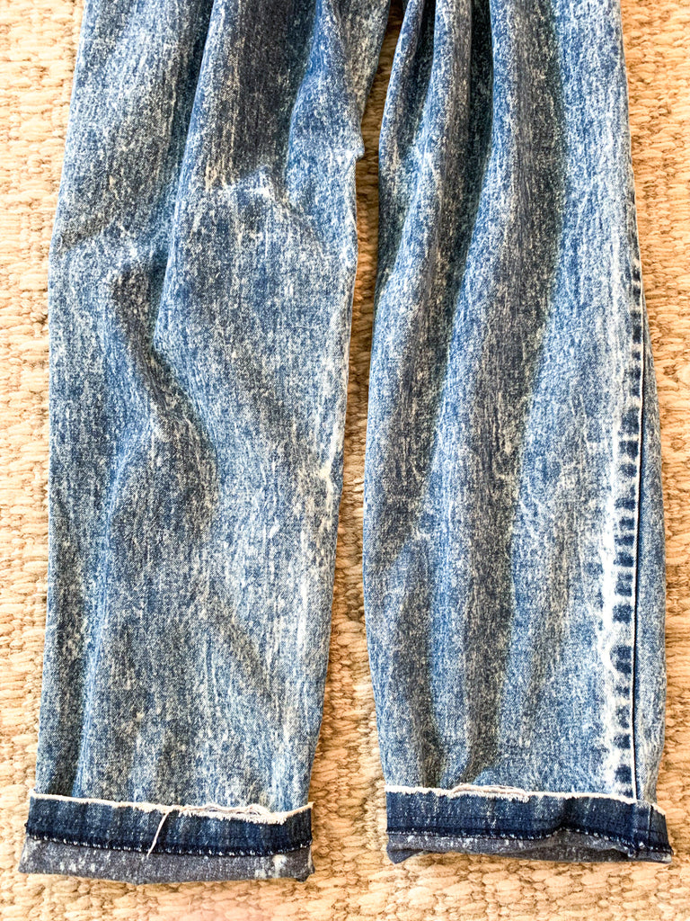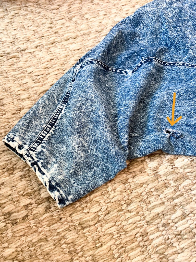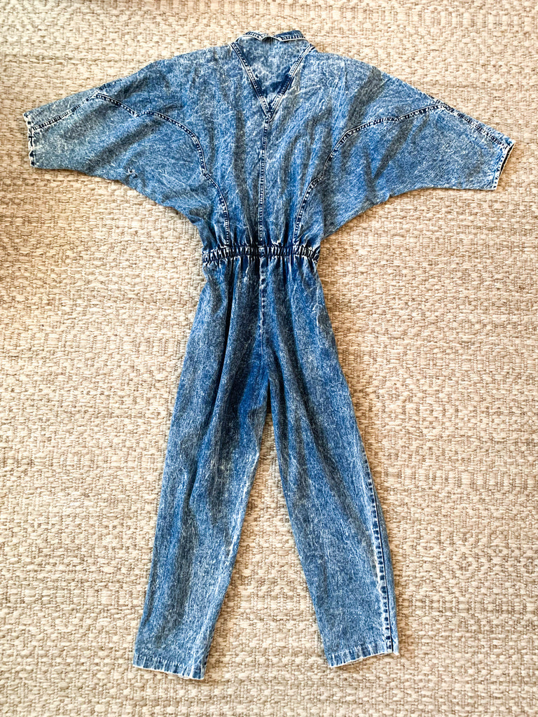 Condition: Very good. One hole on back of left sleeve and slight fraying on leg cuffs (see photos).