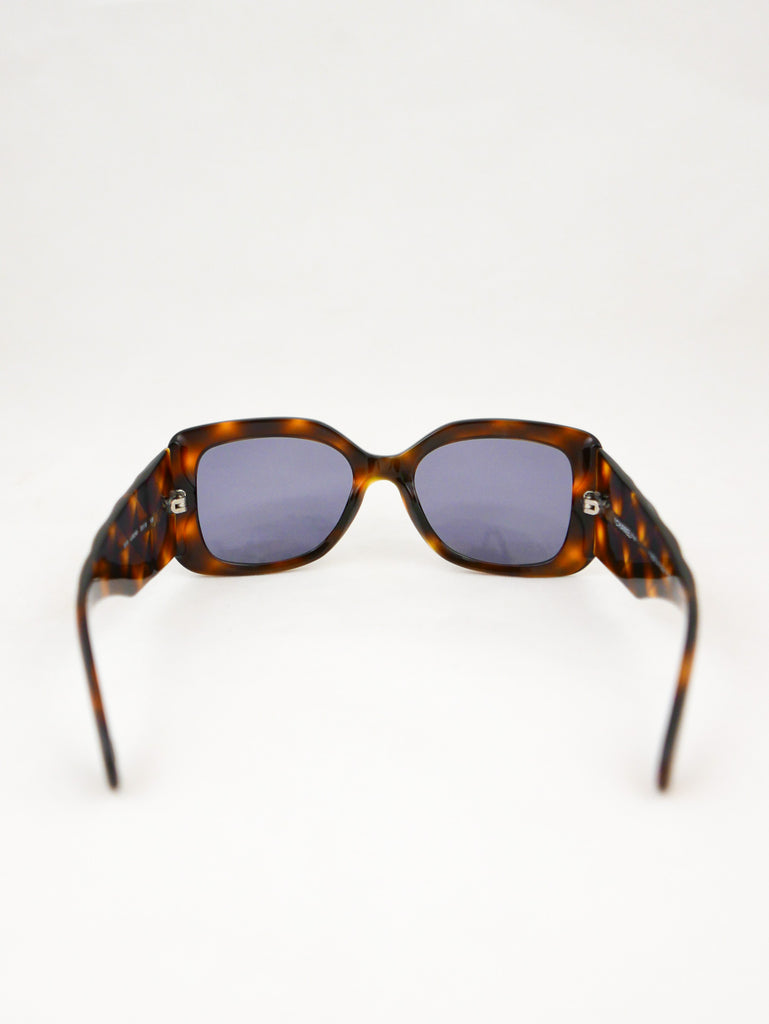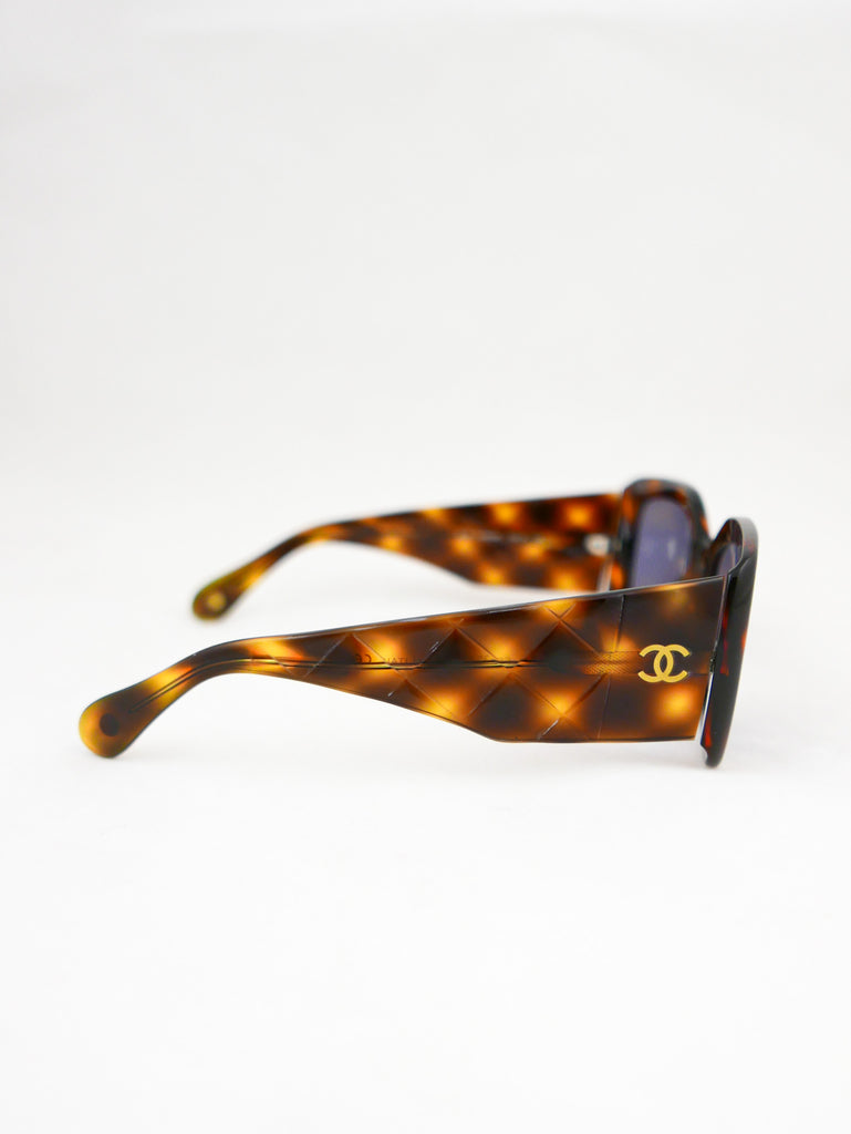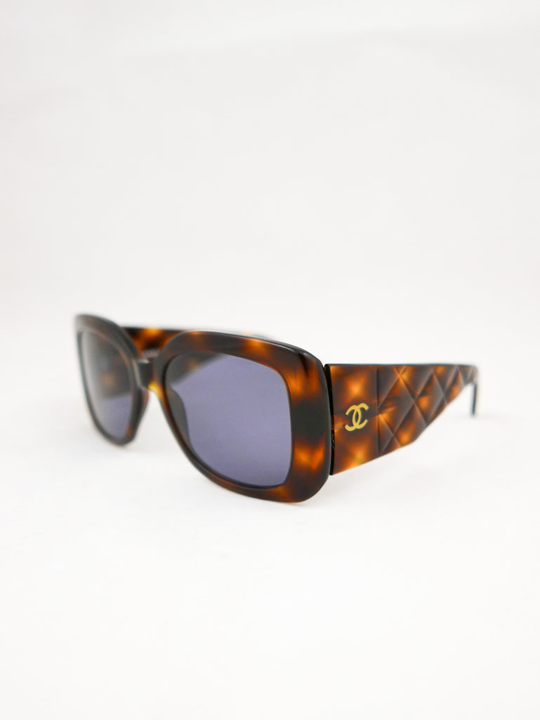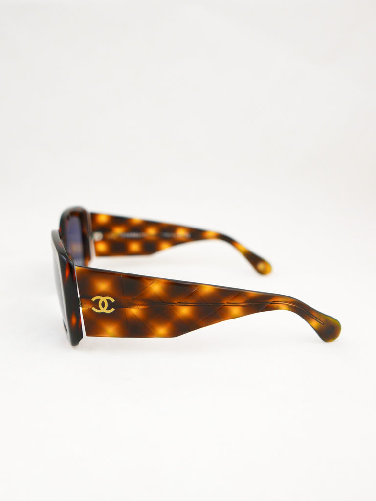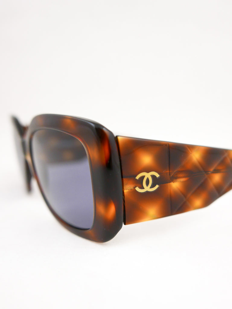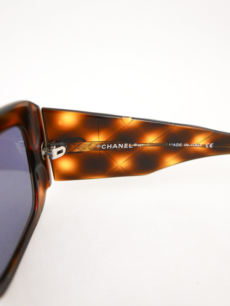 Make a statement with these iconic wide quilted Chanel sunglasses. Gold logo on each temple. Made in Italy.
