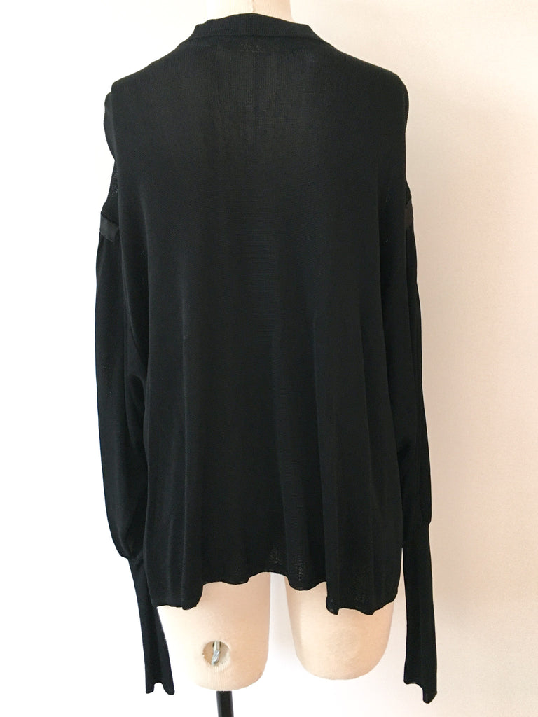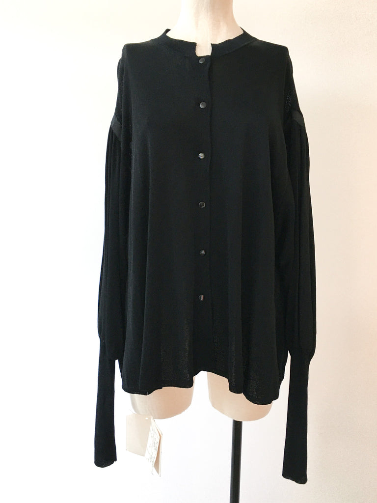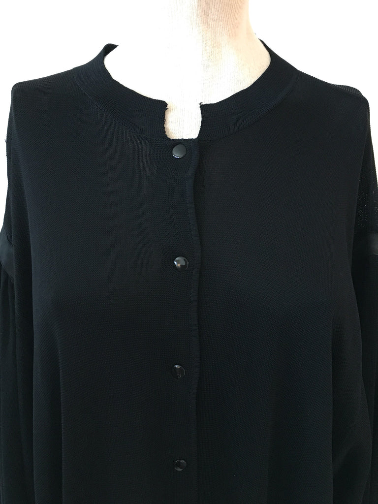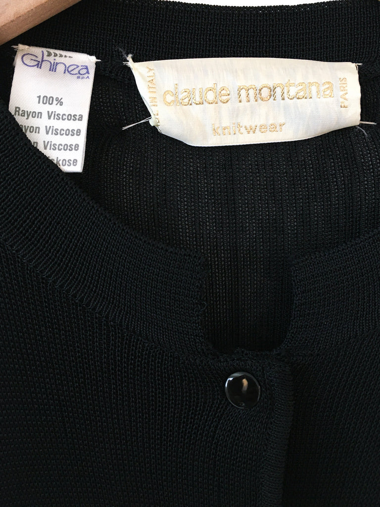 Rayon knitwear bishop sleeve snap front Claude Montana top. Made in Italy