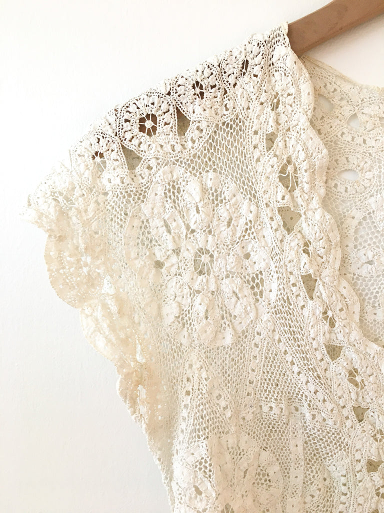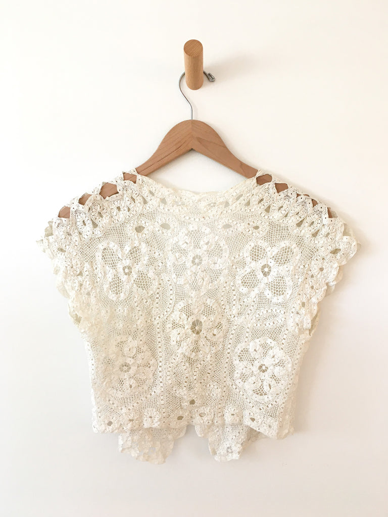 Antique and entirely hand stitched tape lace fitted top. The construction on this is truly unbelievable. The lace was specifically made for this top pattern.