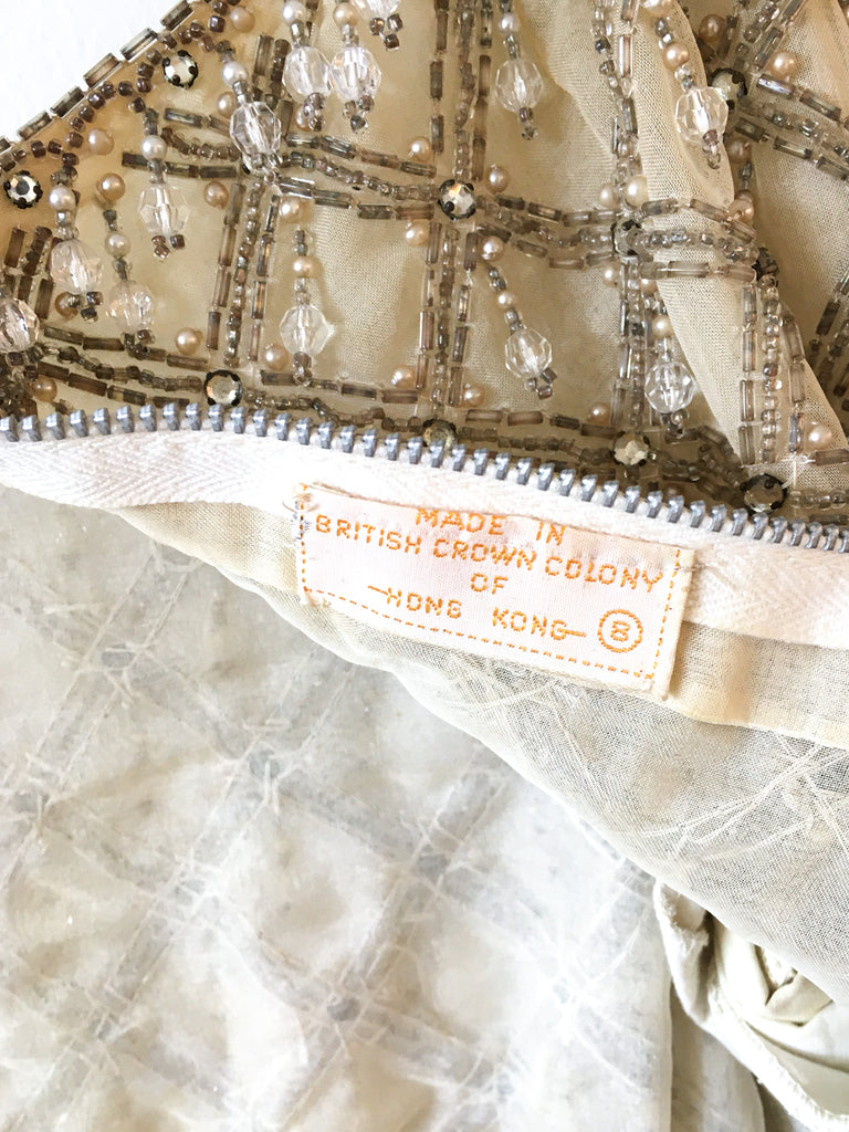 Condition: Very good. May be loose beads here and there, nothing too distracting or noticeable for wear. Repair work on the back zipper.