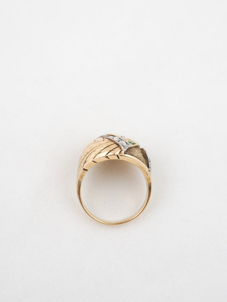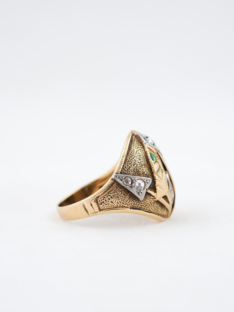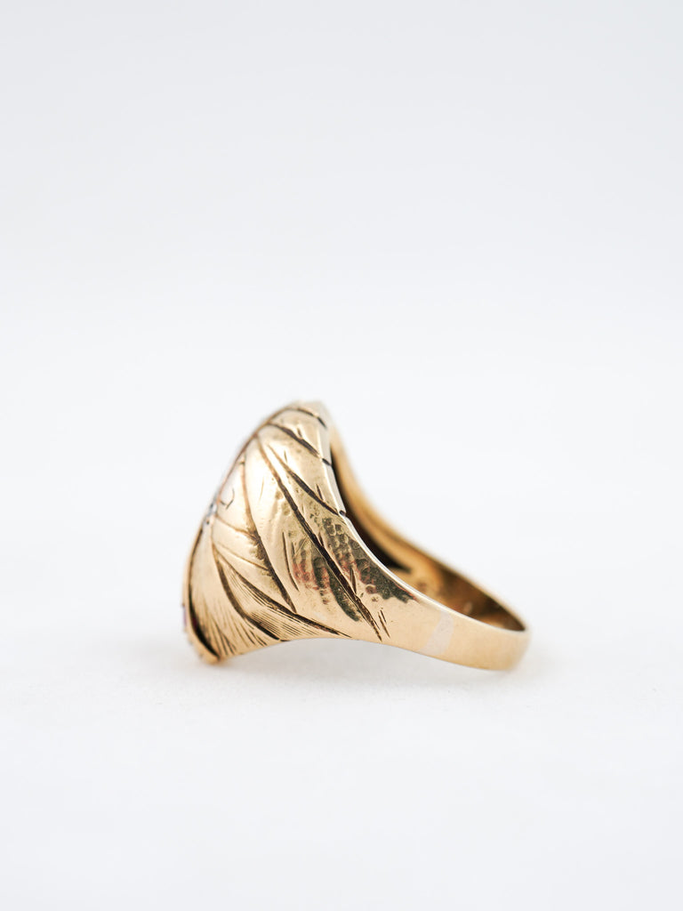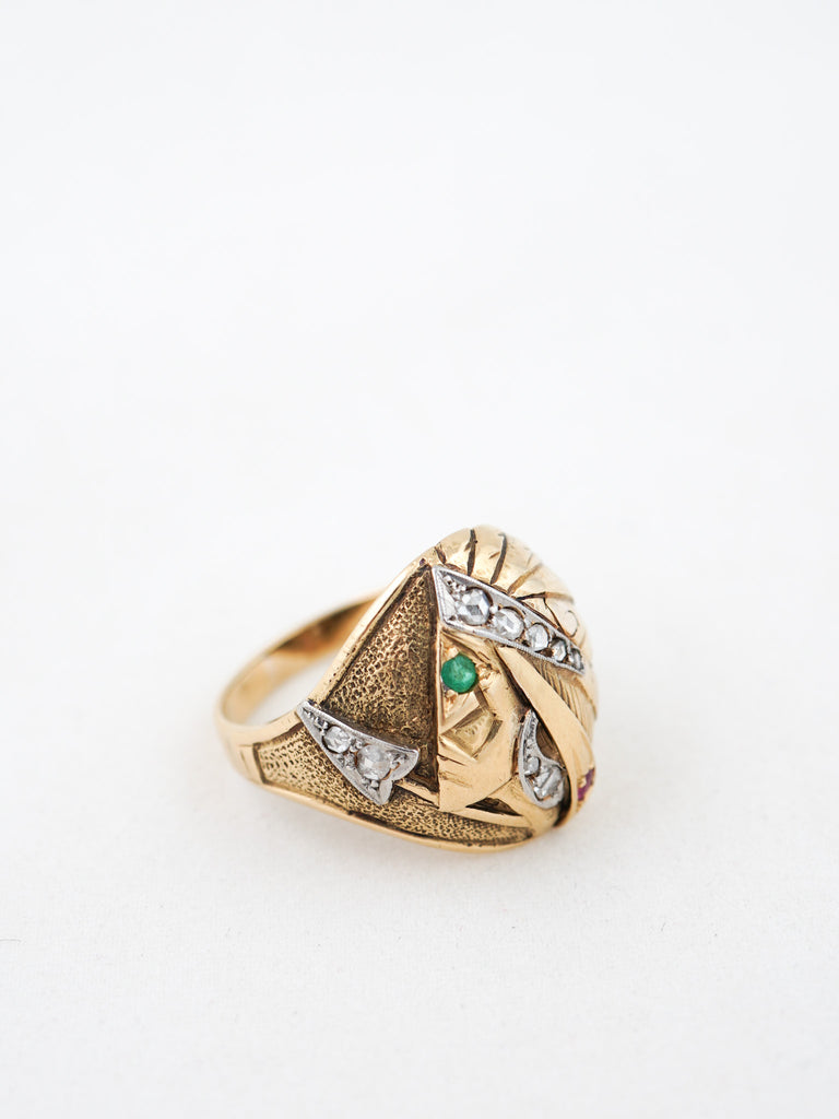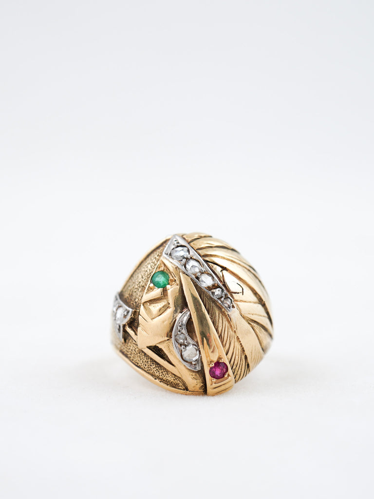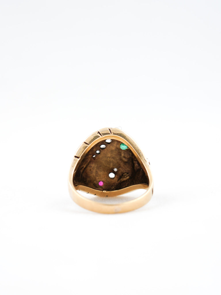 A true work of art Arts and Crafts era Native American warrior motif figural ring. Substantial statement piece. Rare acquisition.