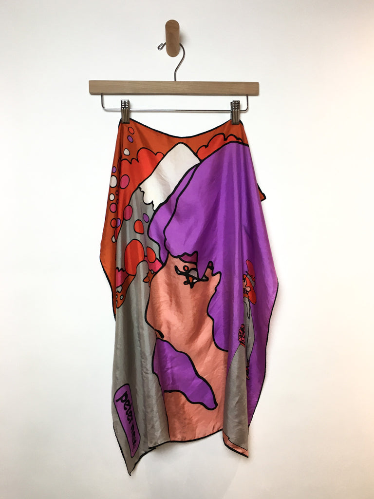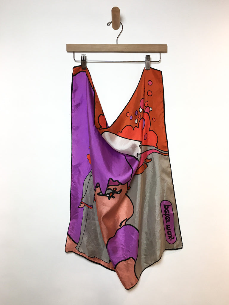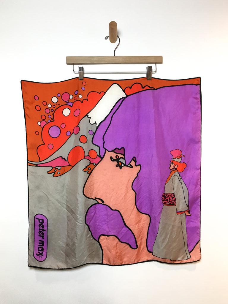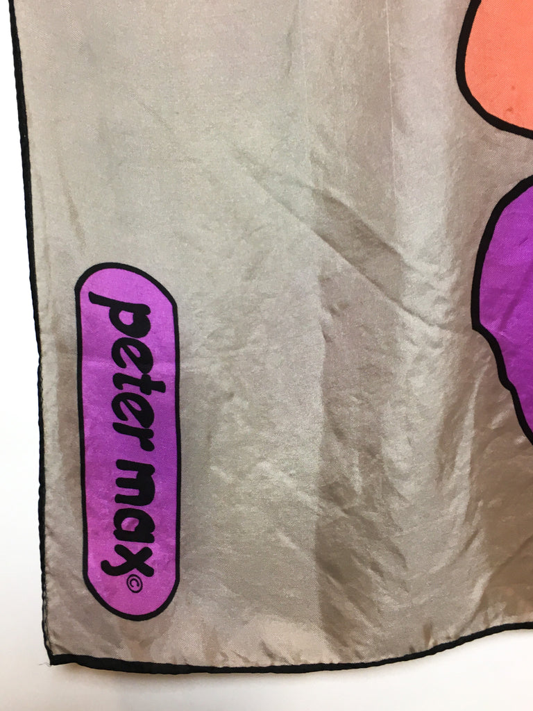 Collectible Peter Max silk scarf. Bold orange, purple and gray. This is an iconic self portrait of the artist himself.