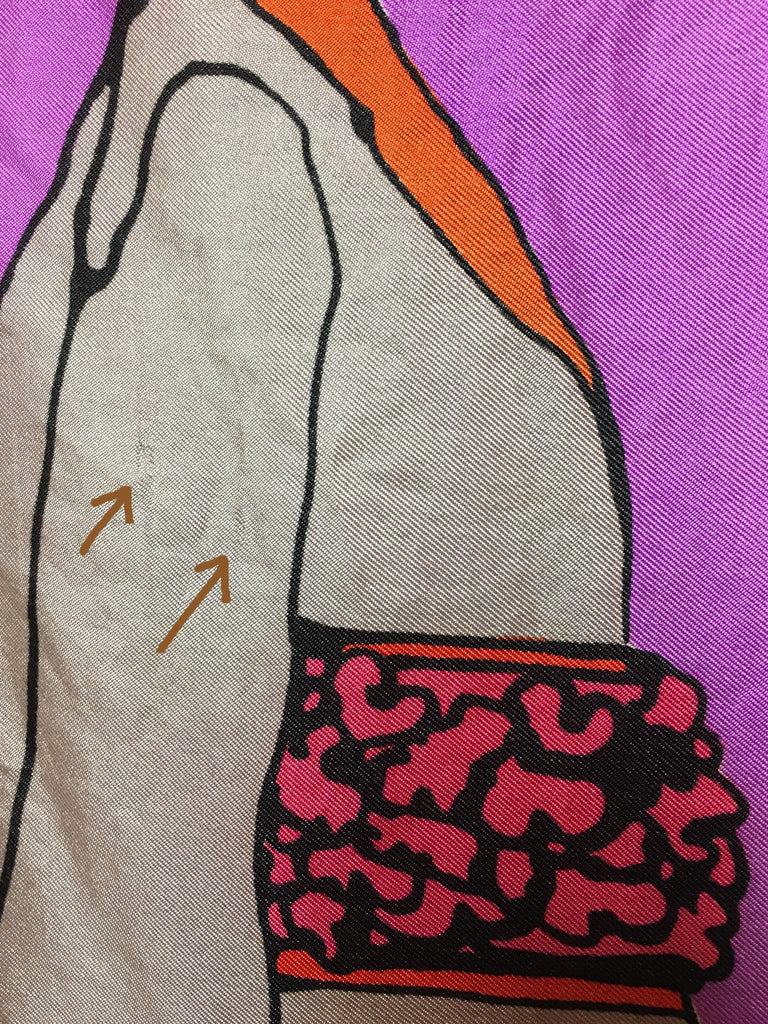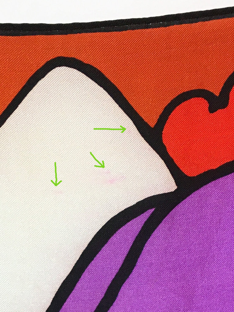 Condition: Very good. See photos for small marks in white area (possible color bleed) and very small rub/indent in gray area.