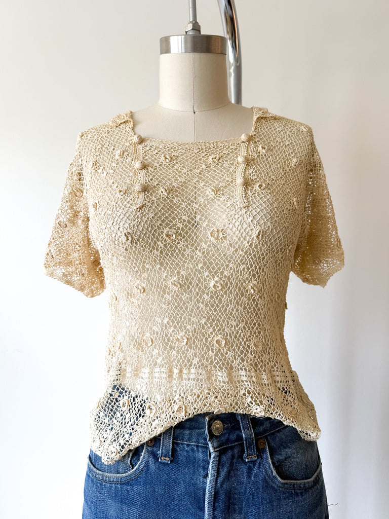 Measurements:Bust 34"Neck opening 7"Sleeve 10"Length 20.5"Waist 30"