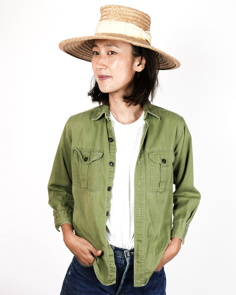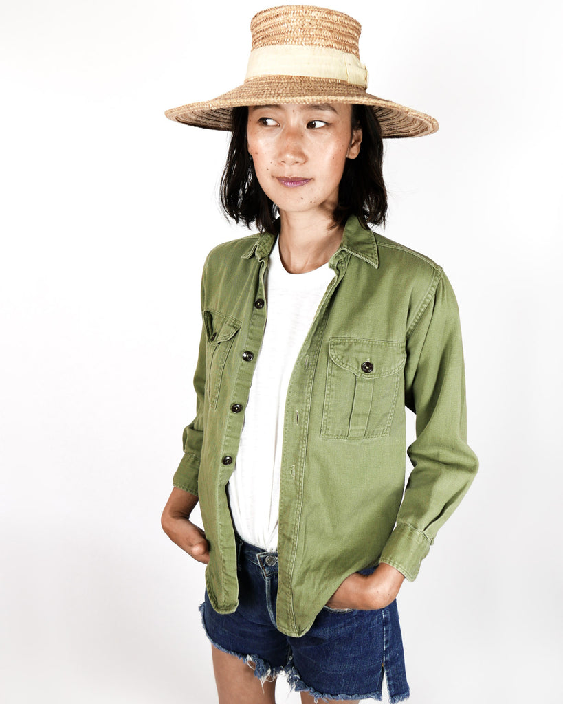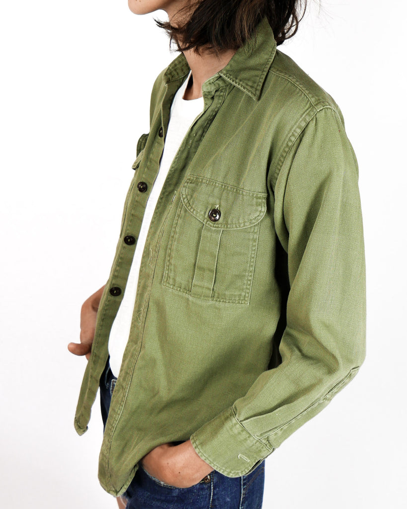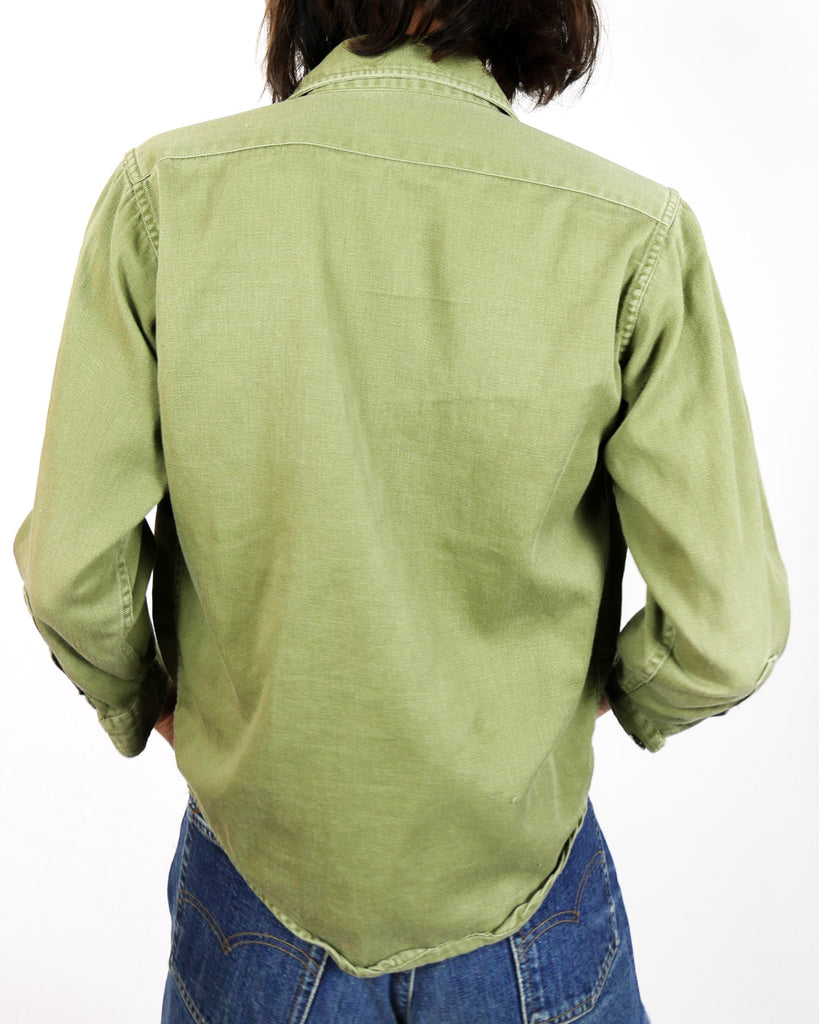 Boy Scouts of America olive green long sleeve button down. Durability and efficiency all wrapped up in the perfect shirt/ light-weight jacket for balmy nights. Pairs great with jeans or drape over a bias cut satin gown. Wear while sipping an espresso in the Palazzo at dusk.