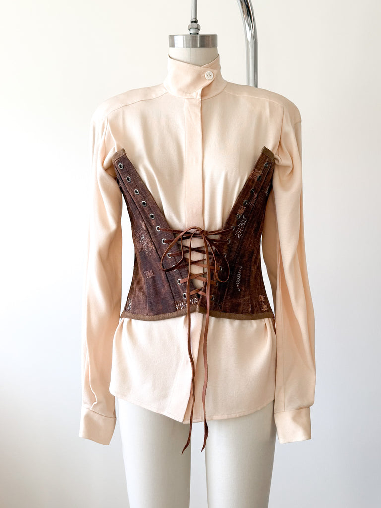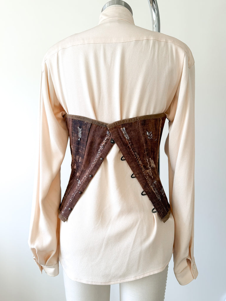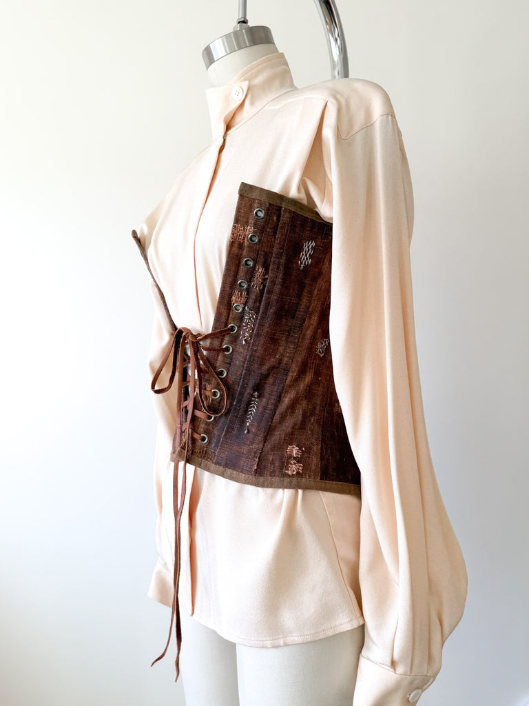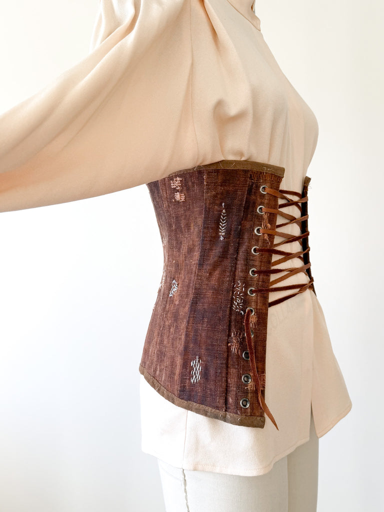Judy is a colleague and fellow lover of old textiles. She is renowned for her talents and has been supplying Double RL for ages with the most sought after one of a kind bags. While she endeavored to create these corsets, they proved more laborious than she wanted so there was a very small number created. I was fortunate enough to scoop up a mini collection directly from Judy. I am so grateful, such a talented woman! Each corset or bustier is unique and enchanting.