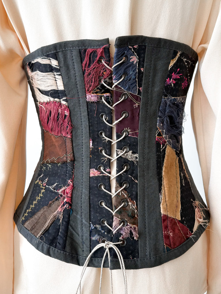 Judy is a colleague and fellow lover of old textiles. She is renowned for her talents and has been supplying Double RL for ages with the most sought after one of a kind bags. While she endeavored to create these corsets, they proved more laborious than she wanted so there was a very small number created. I was fortunate enough to scoop up a mini collection directly from Judy. I am so grateful, such a talented woman! Each corset or bustier is unique and enchanting.