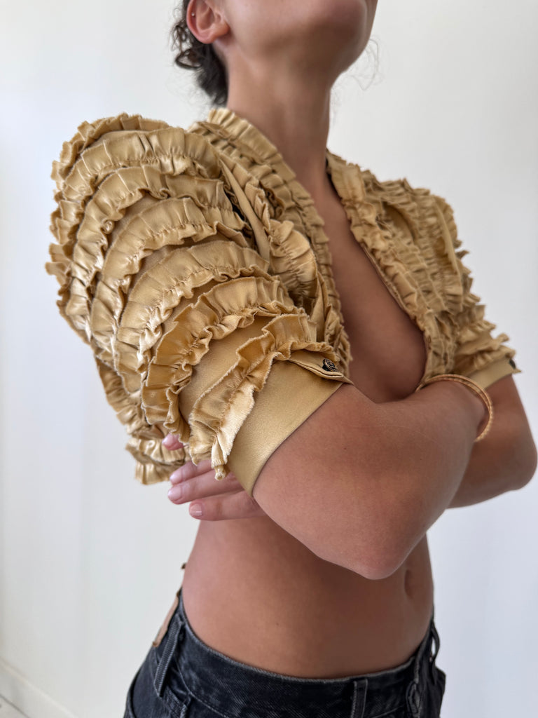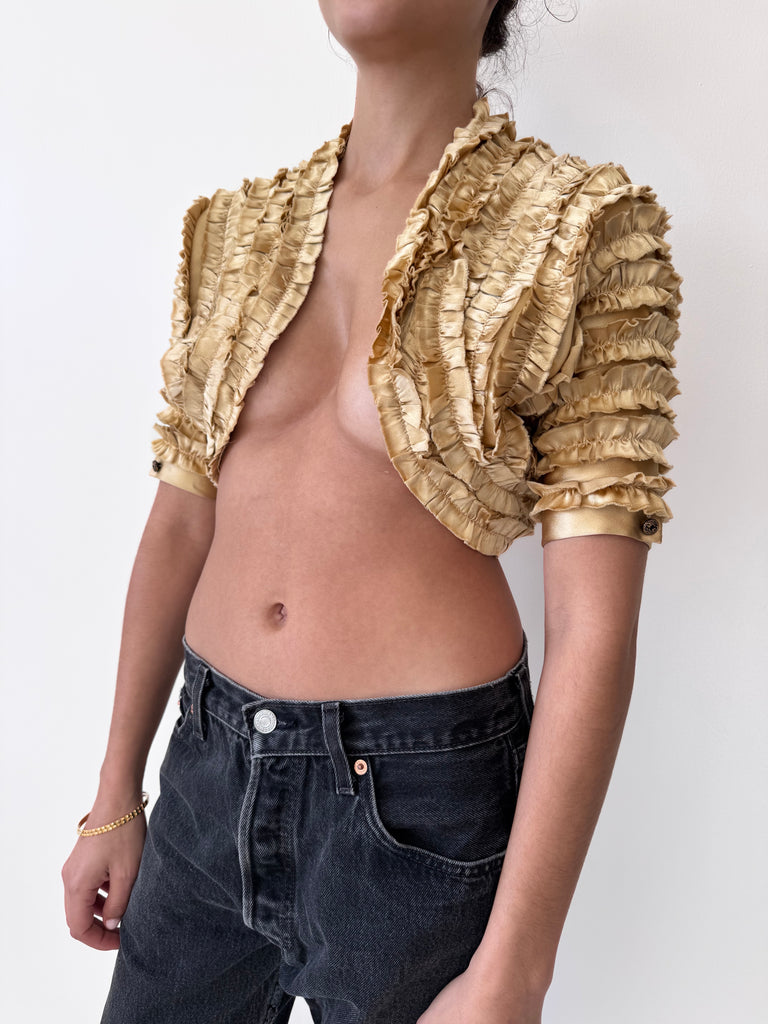 Fit: XXS cuff is particularly tiny Fabric: SilkLabel: Elizabeth Mason CoutureEra: Contemporary