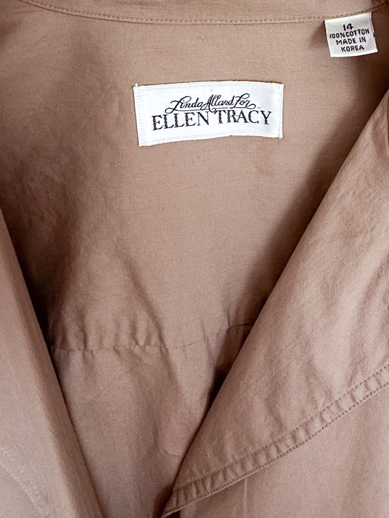 Fit: O/S (listed as a 14, we like the oversize look)Fabric: CottonLabel: Linda Allard for Ellen TracyEra: 1980's