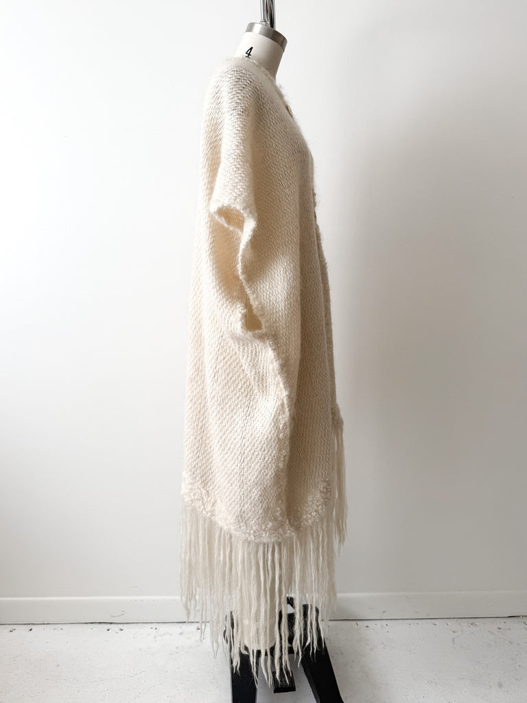 Measurements:Bust 58"Arm opening 13"Length (with fringe) 49"