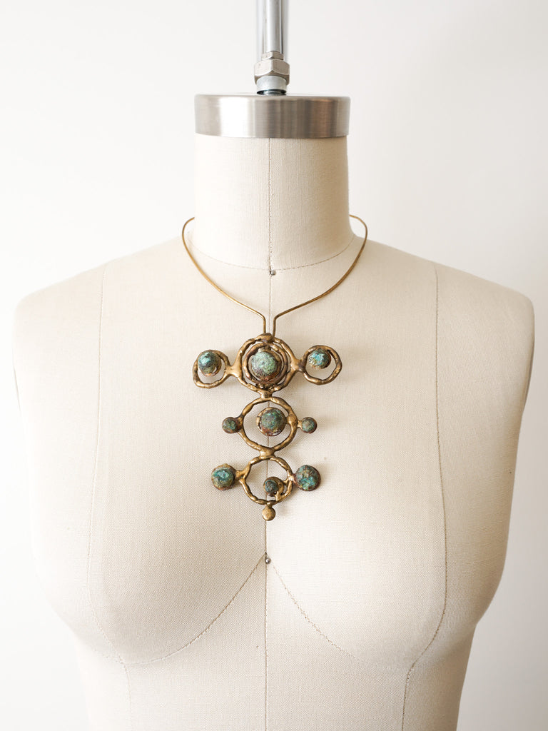 Hand Wrought Brass Signed Galaxy Necklace