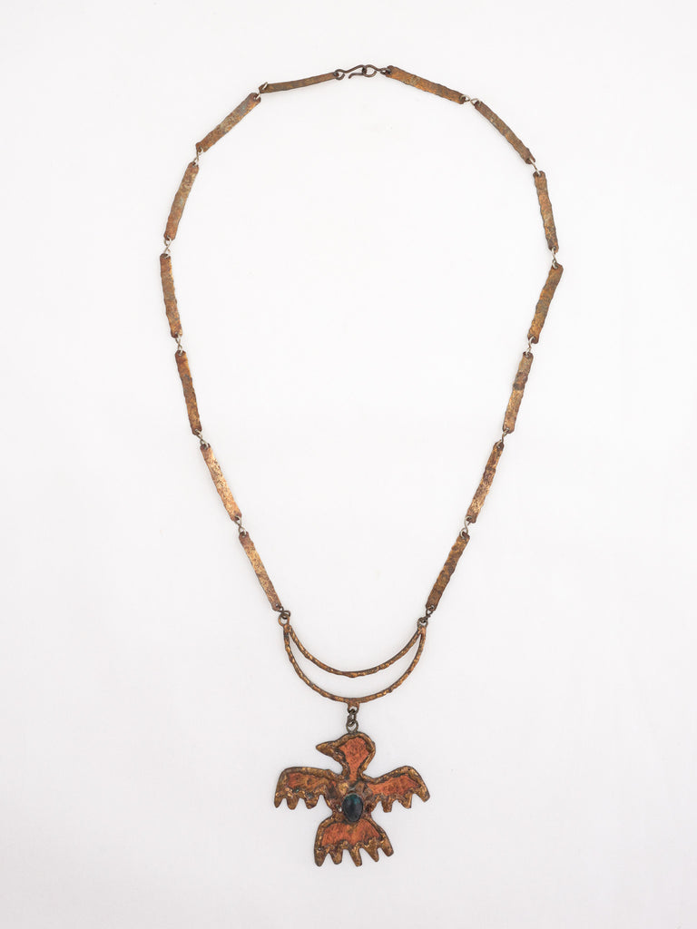 Artisan crafted one of one. Brutalist era. Cabochon is a black and dark green stone possibly malachite.