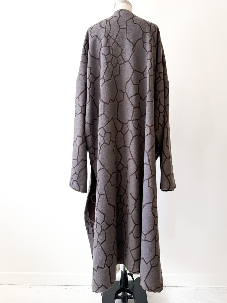 Avant Garde cocoon wrap full length coat is so cozy and substantial.
