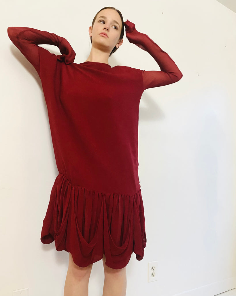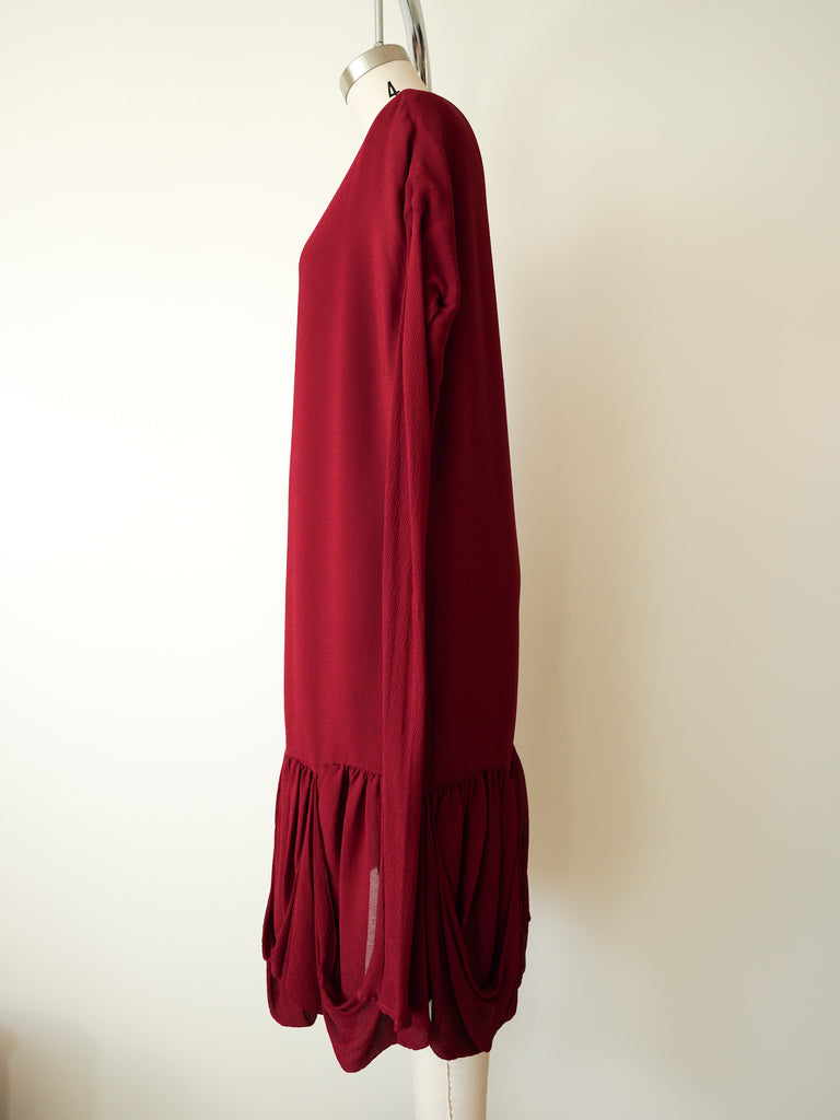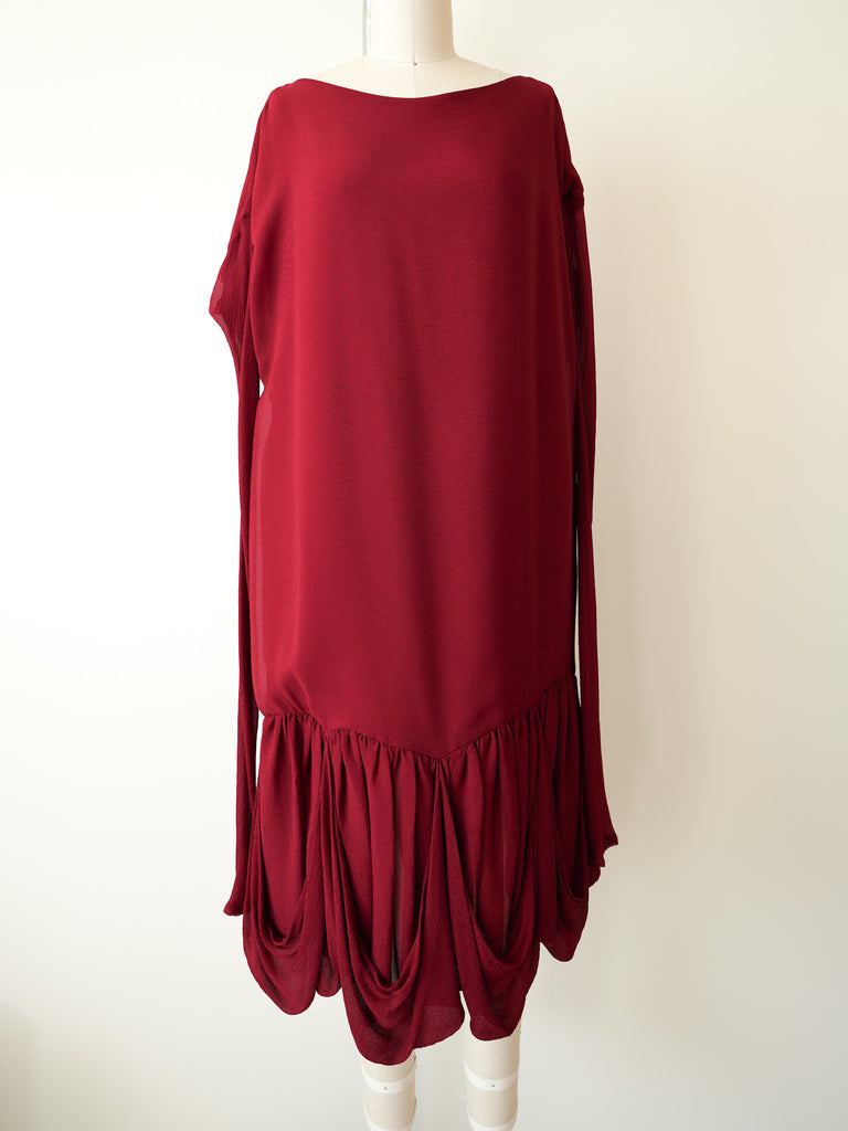 Silk chiffon layered drop waist dress. Draped hem is especially romantic.