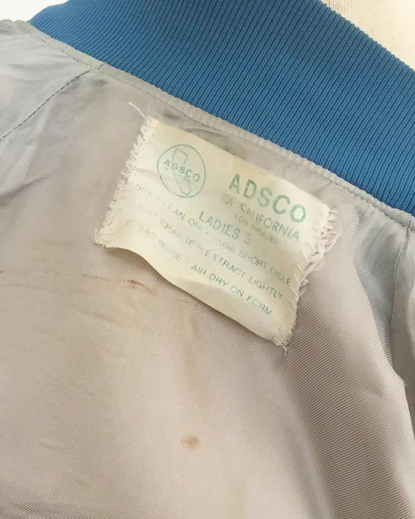 Jacket is made by Adsco of California Los Angeles. Tag reads size small, however we recommend using our specific measurements below.