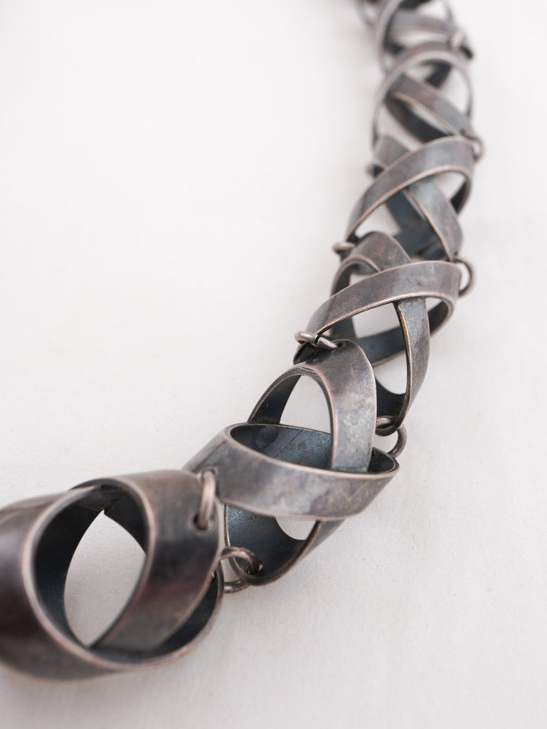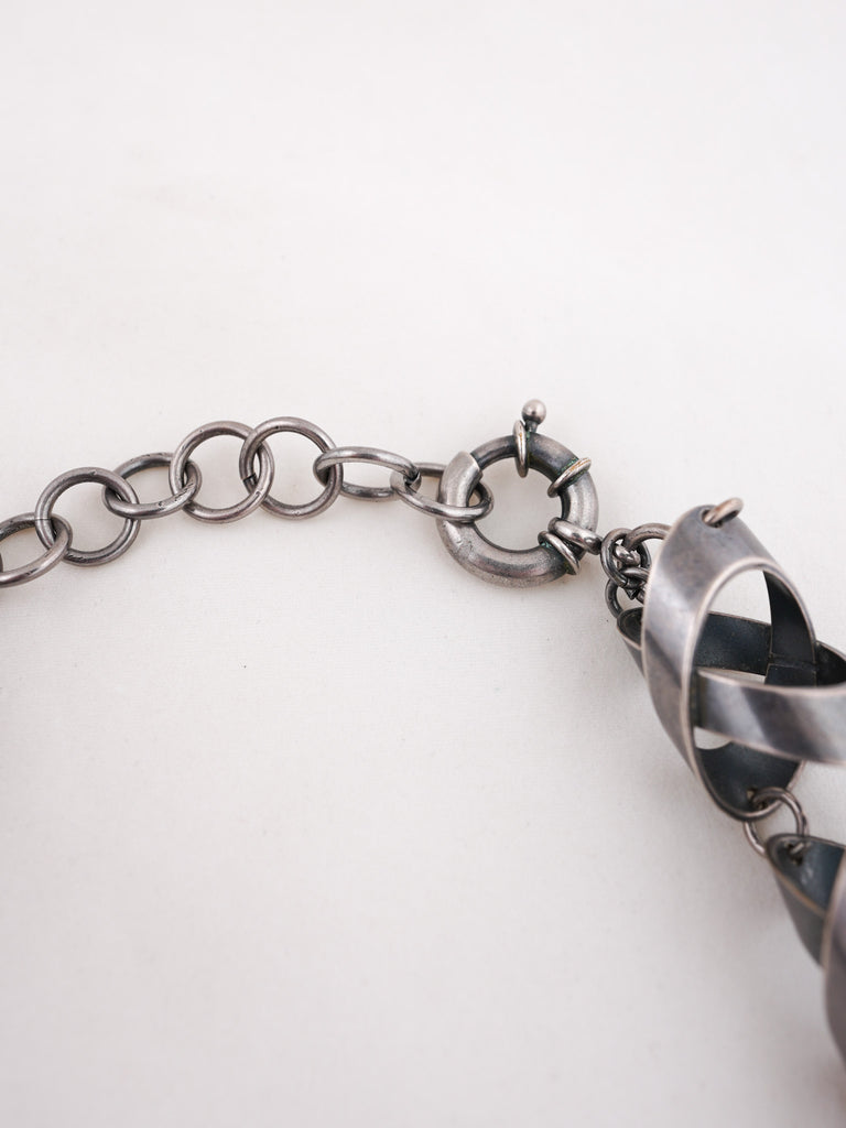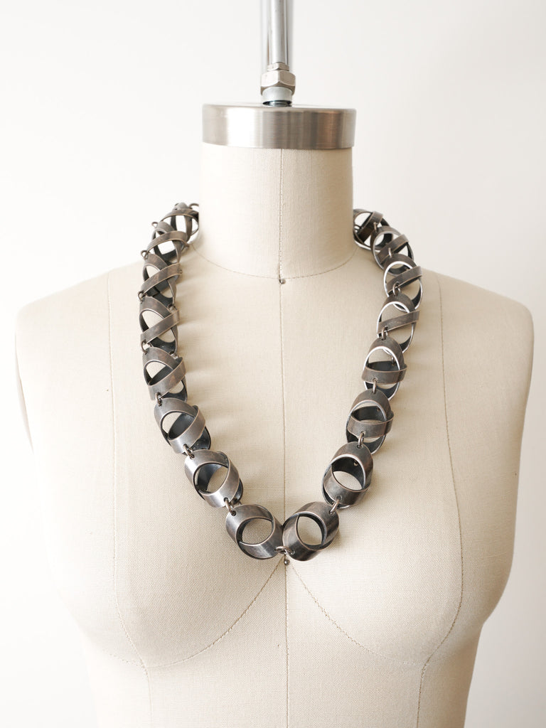 Funky silver toned metal chunky statement necklace.